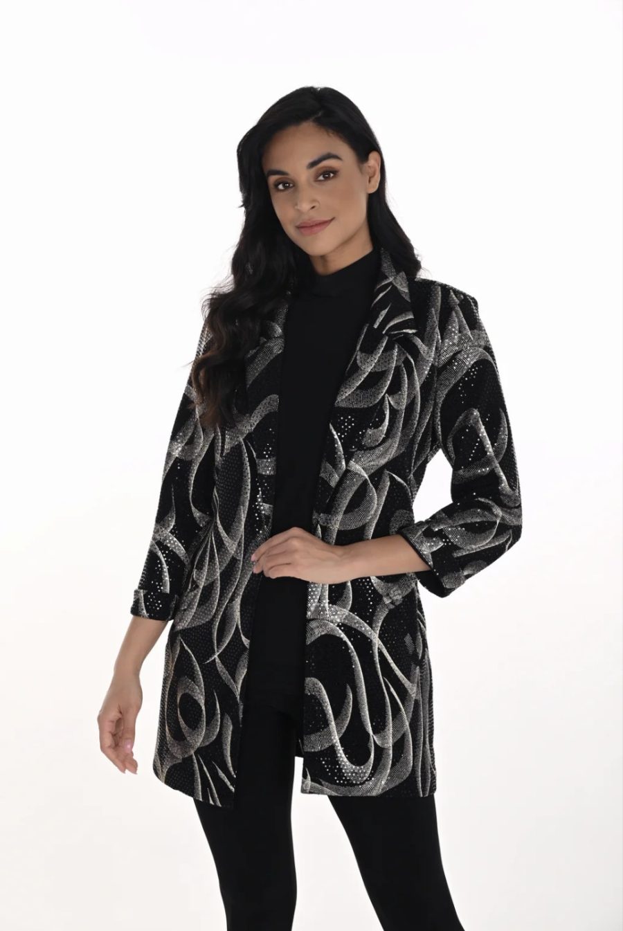 Designed to catch the light and turn heads, it’s the perfect layer for glamorous nights out, cocktail events, or any occasion that calls for a touch of luxe. Tailored yet effortlessly chic, this jacket pairs beautifully with sleek trousers, statement skirts, or your favorite little black dress