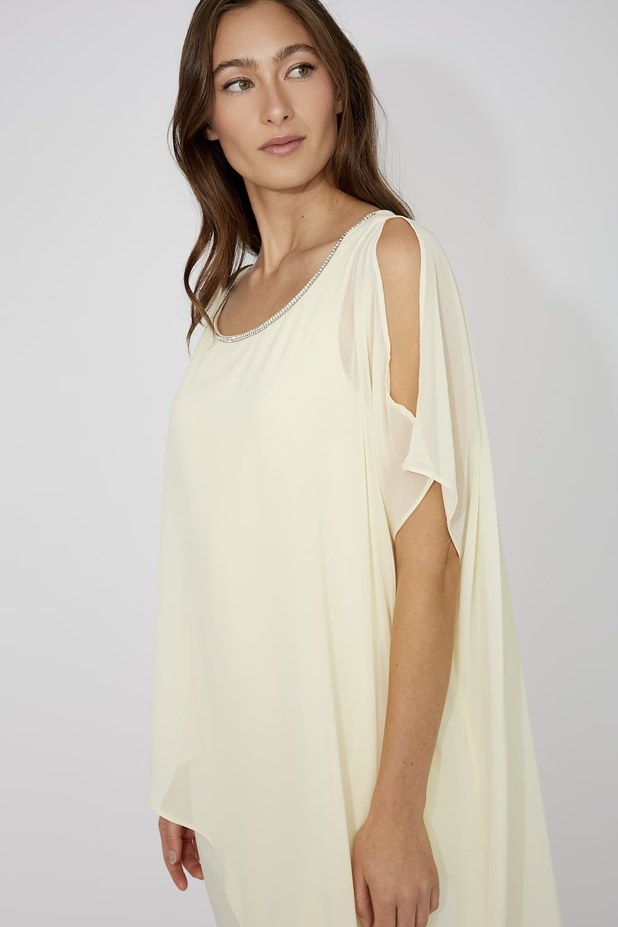 Step into elegance with this knee-length sheath dress. Perfect for both formal and semi-formal occasions, this dress features a sophisticated round-neck and flutter-sleeve design. Adorned with jewels, its plain pattern and feminine style make it a timeless addition to your wardrobe. The sleeveless cut ensures comfort and chic appeal, making it an essential piece for any stylish event.