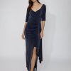 Turn heads in this stunning wrap-style dress, designed to flatter and sculpt in all the right places. Featuring a beautiful mix of blue, ivory and soft grey leaf print, this elegant knee-length style is perfect for weddings, special occasions or summer events. Crafted in Frank Lyman’s signature stretch jersey, it offers comfort as well as shape, with clever ruching at the waist to create a slimming silhouette.