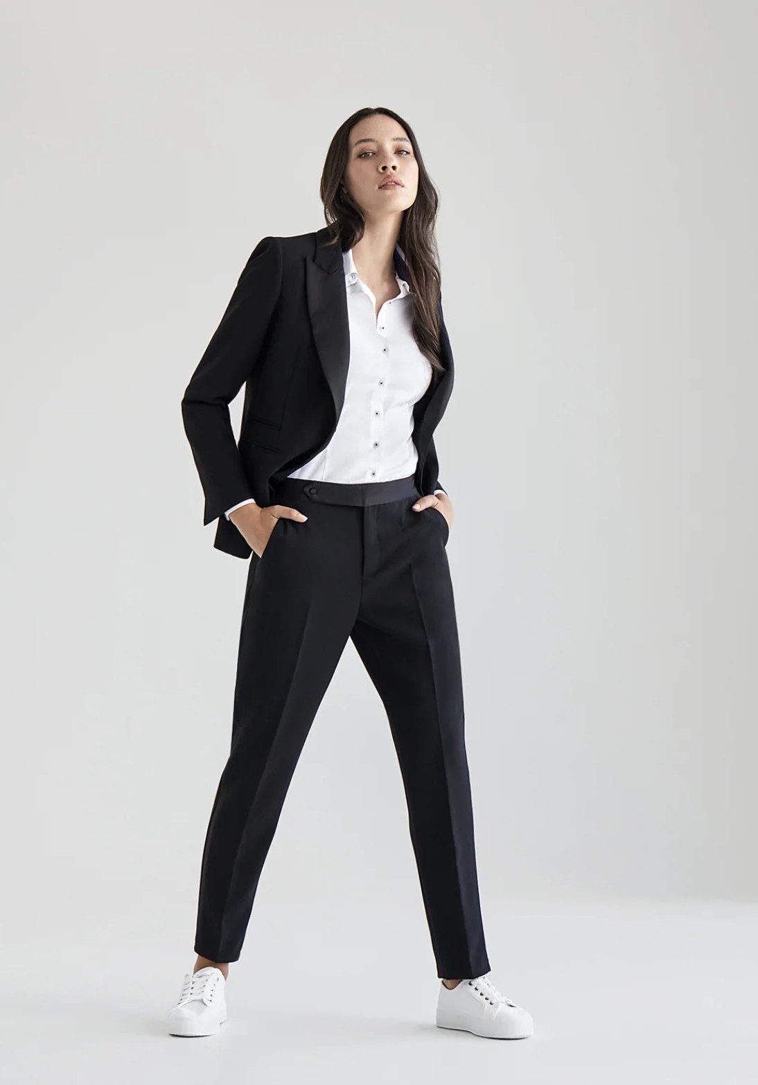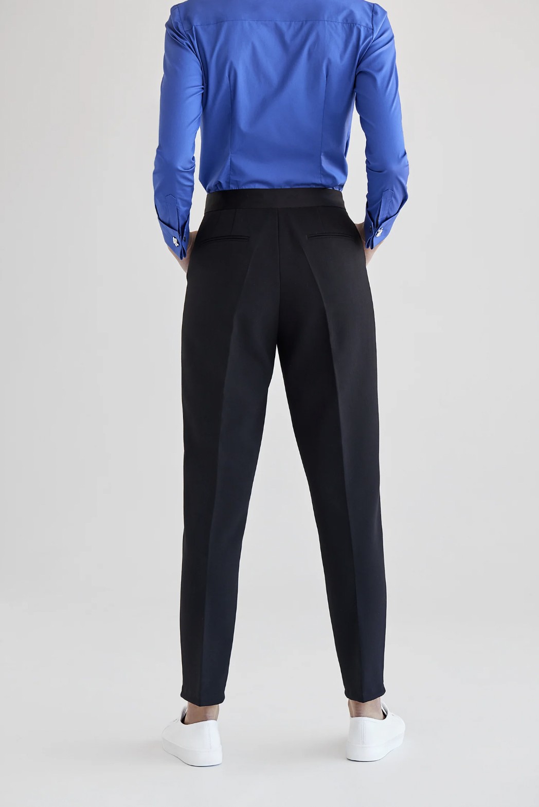Take the power suit to the next level with the Asteria Tux Pants in black onyx. Named after the Goddess of the Stars, Asteria, the Tux pants are the foundation of the Faurie Tux – the ultimate strong suit you can step out in every day.