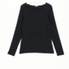 A classic garment in very soft and warm micromodal and stretch cashmere for a perfect fit to wear alone or as an under-jacket. The blend of these fabrics make the garment lightweight but still warm. It has long sleeves and a boat neckline.