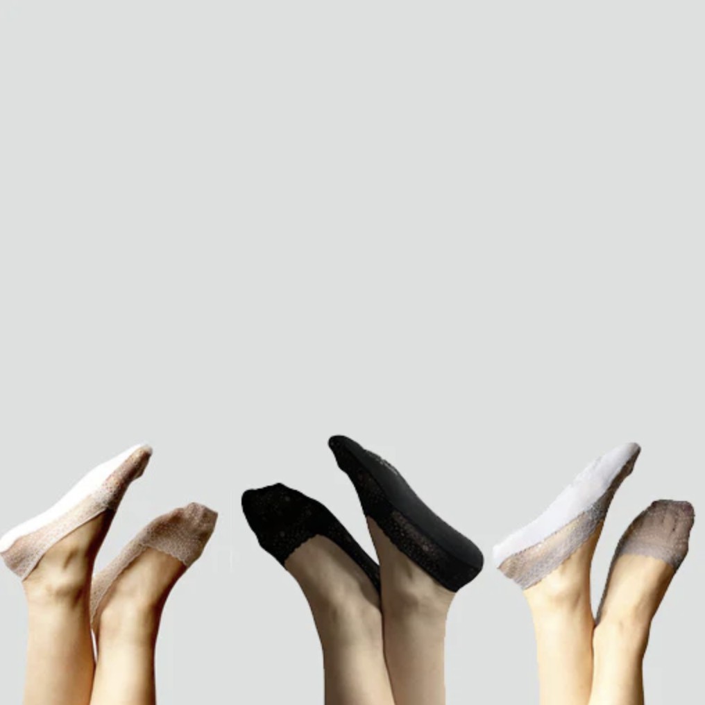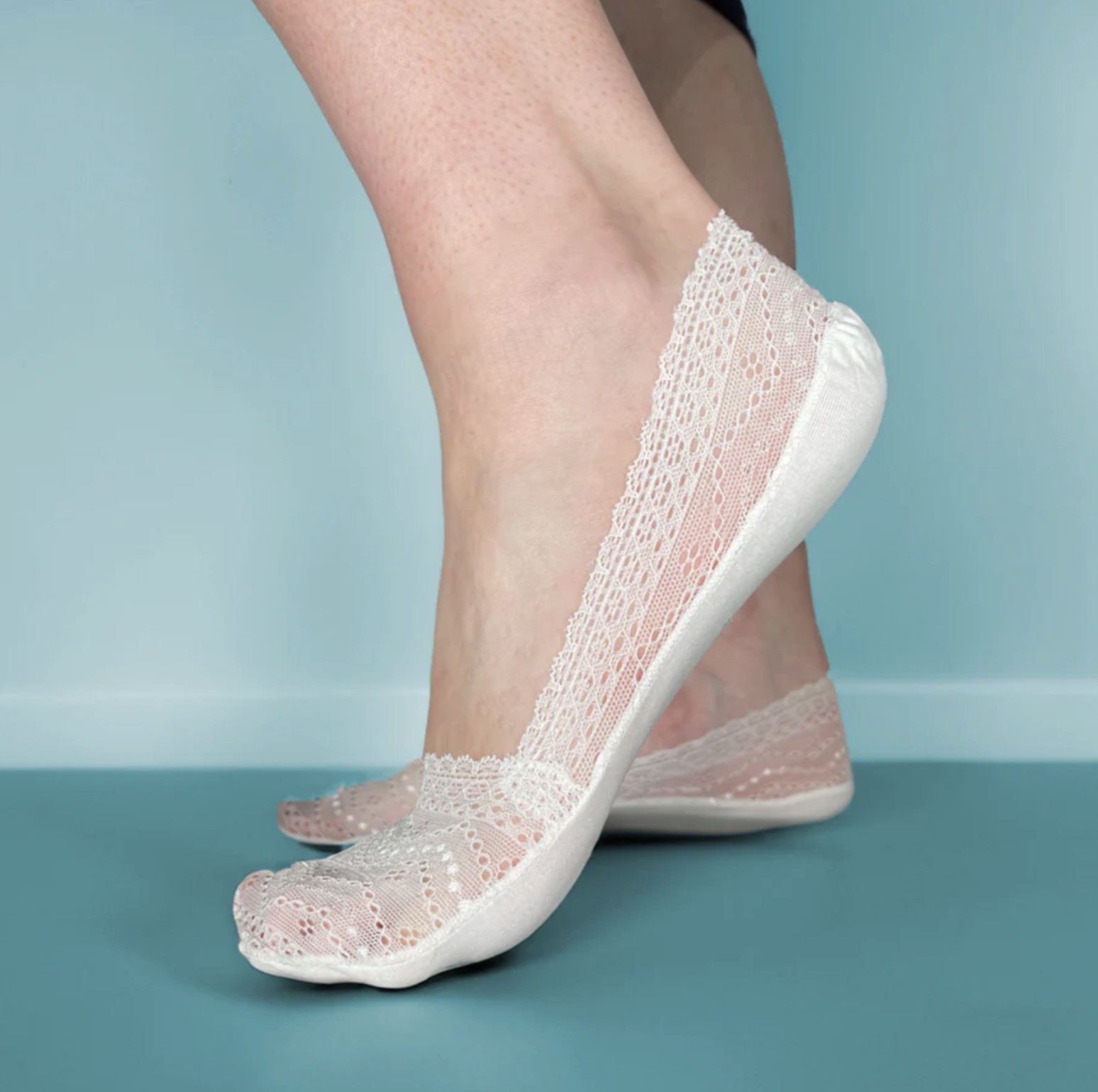 Meet the Dainty Sockette! This new style has a higher front piece for extra comfort whilst still be feminine and practical. The perfect accessory when wearing low cut shoes and boots! The silicone gel border that lines the inside edge of the sockette helps to prevent “roll down”, whilst the sole is embellished with a silicon MINX heart that works to create a non-slip surface.