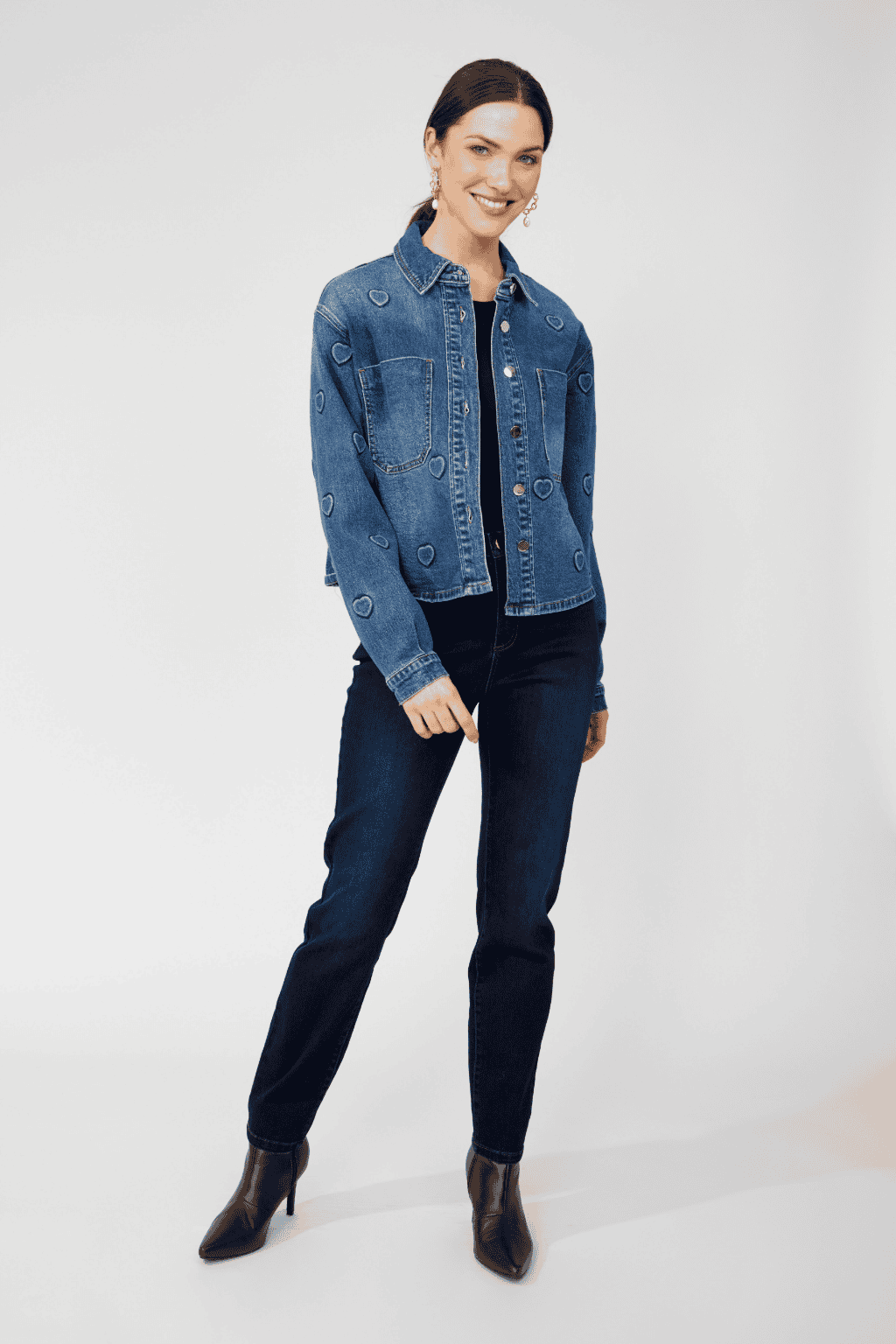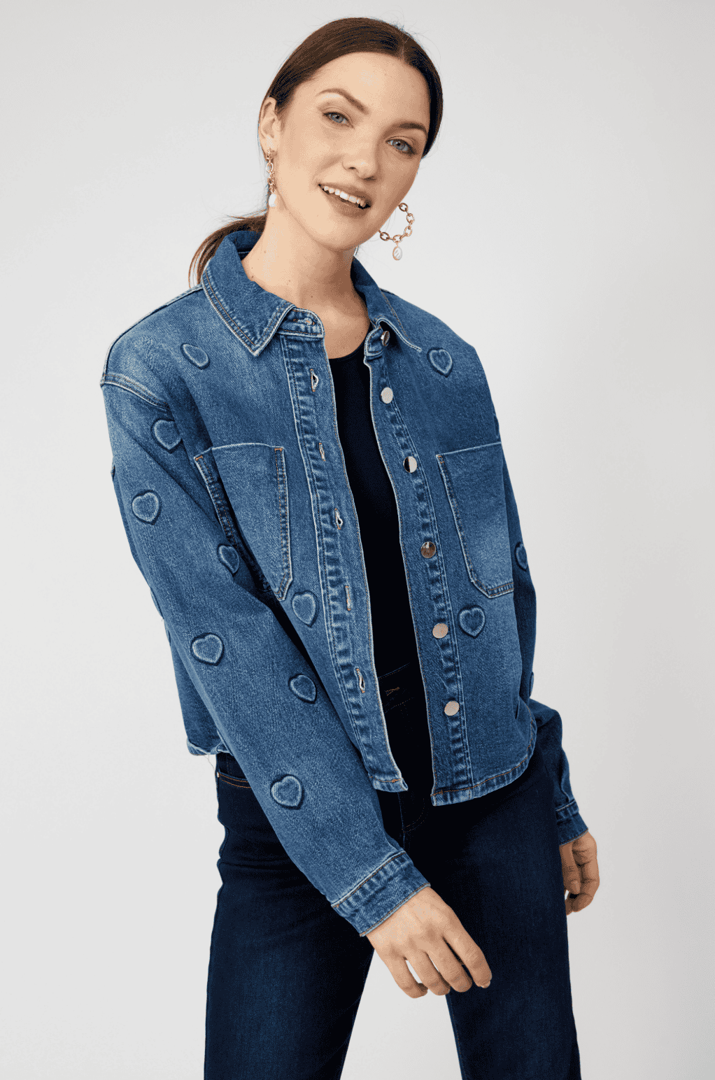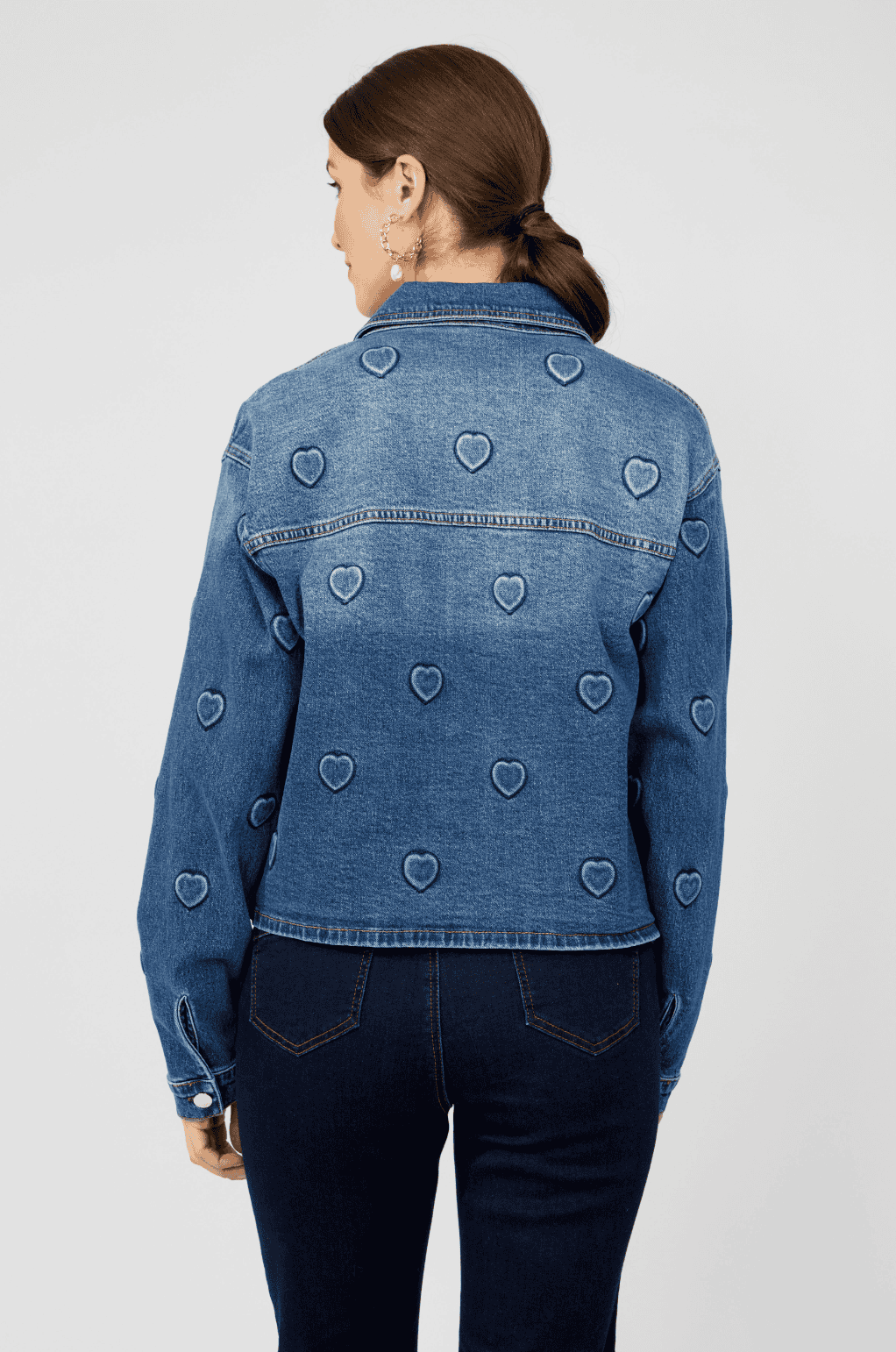 A little flirty, a little fun — this embossed heart denim jacket takes a classic and gives it personality. Perfect for brunch with friends, weekend adventures, or layering over your favourite dress, it’s the kind of piece that makes every outfit feel a little more joyful.