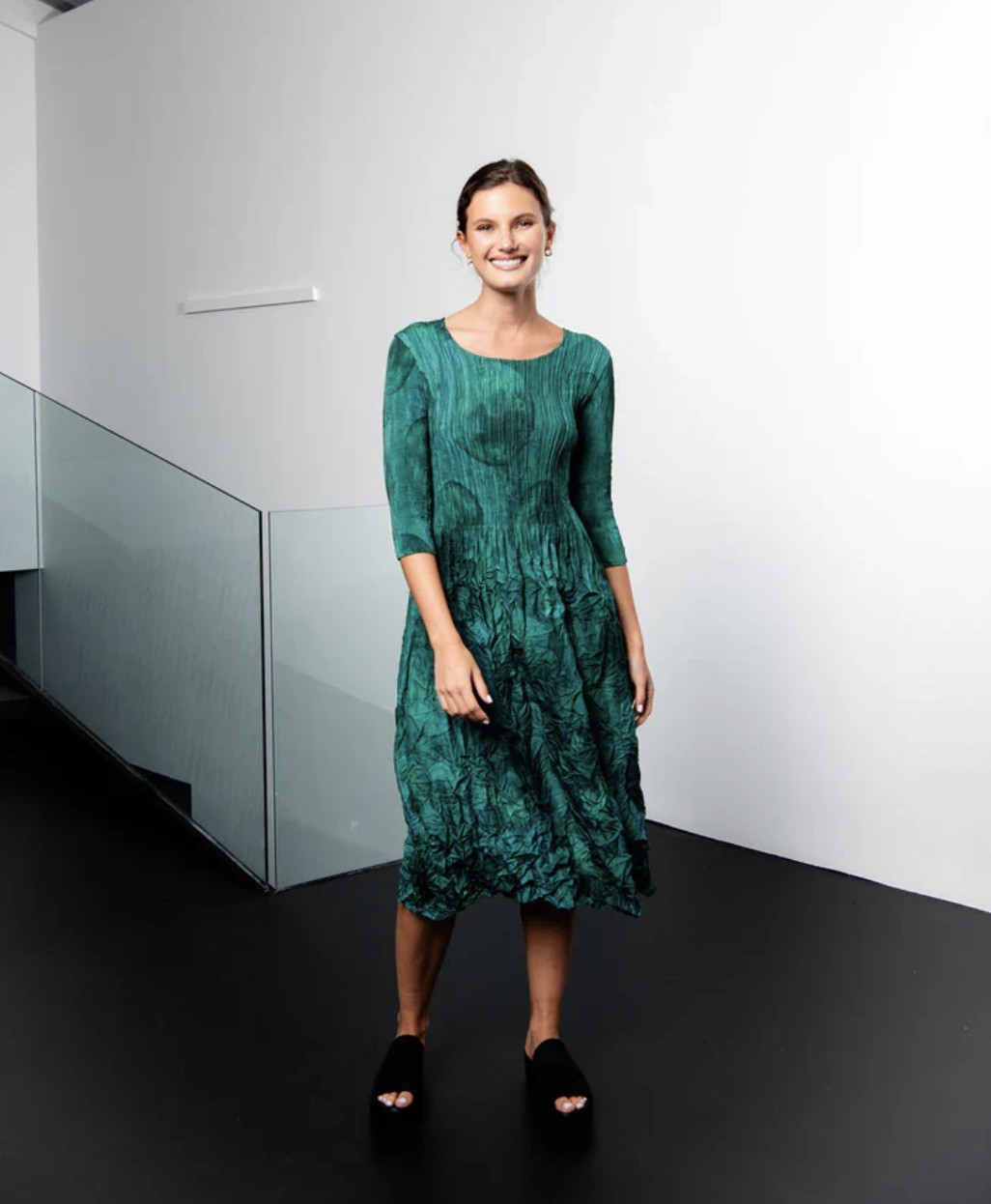 From the infamous Smash Pocket Dress design, the addition of the 3/4 sleeve allows this handmade garment is a timeless piece, to be worn throughout the year to any event.