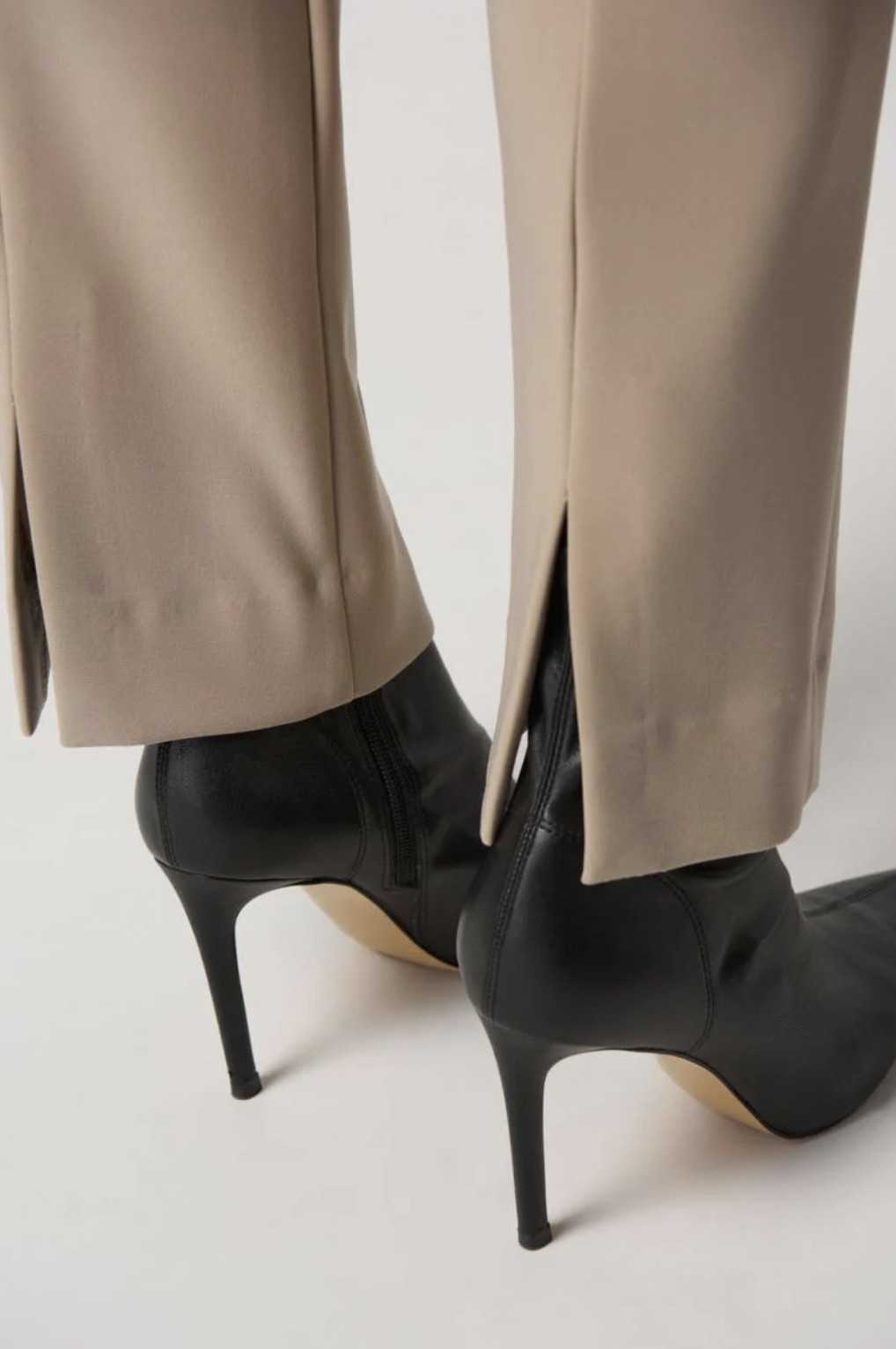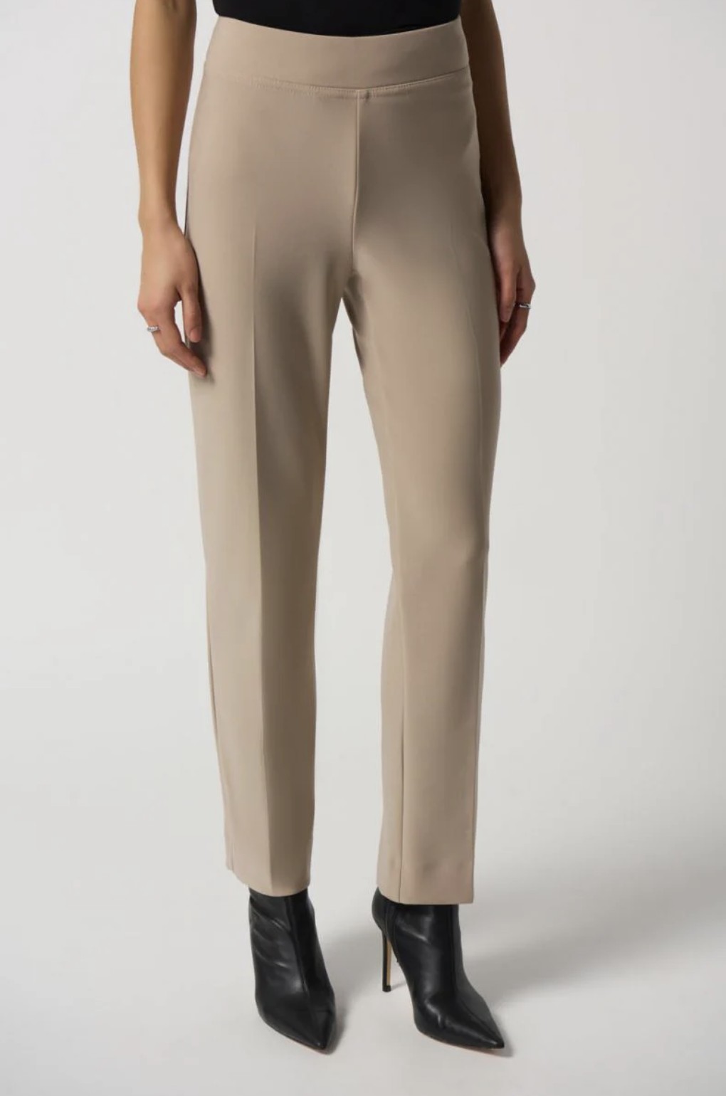 Sleek and sassy pant in a polyester and Spandex blend fabric. High elastic waist for a stylish fit. Gorgeous cut flatters waist and legs. No zipper. Hem falls at the ankle. Pairs beautifully with tops, tunics, sweaters, and more.