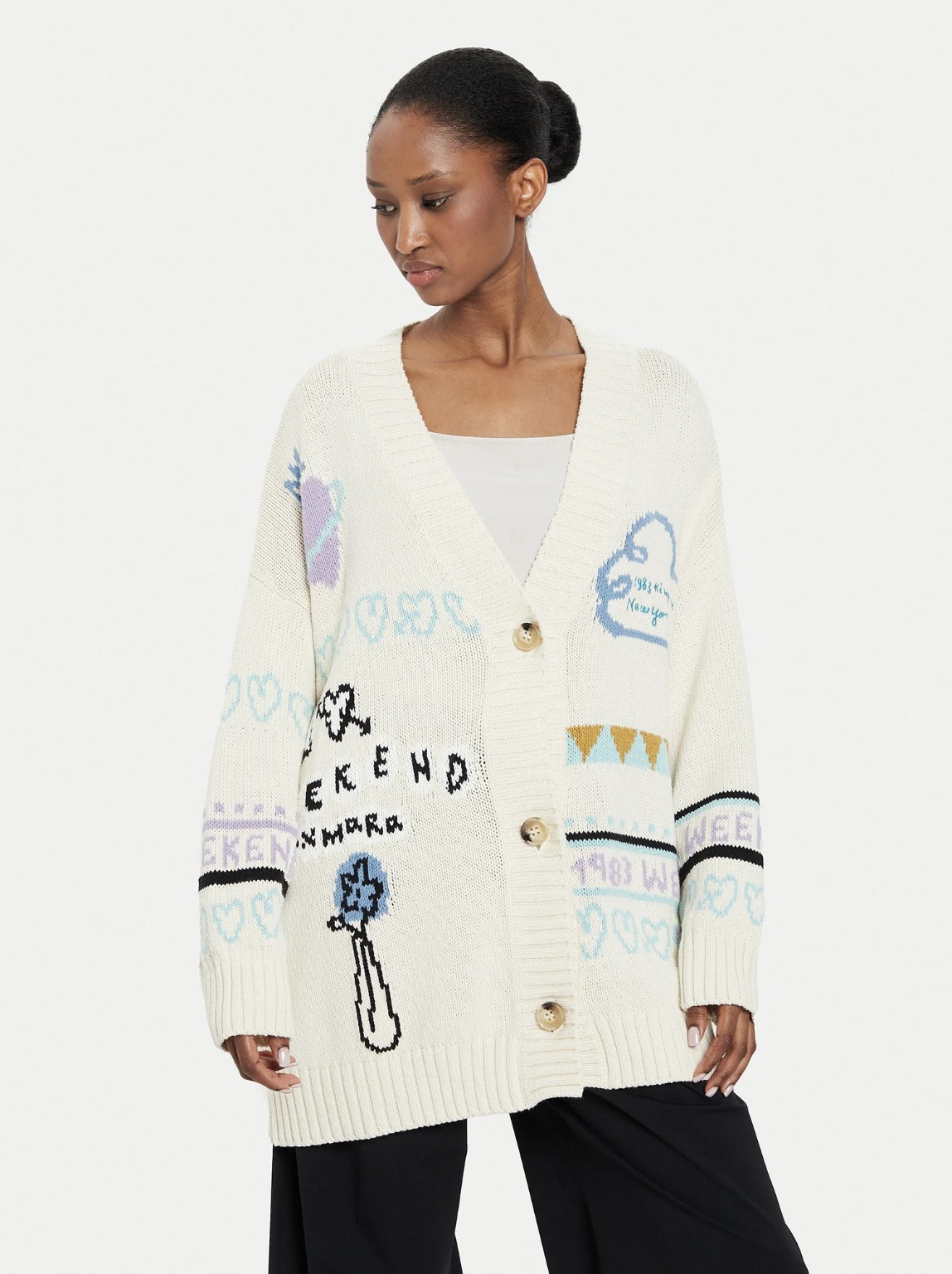 Indulge in understated luxury with this exquisitely crafted cardigan by Max Mara. Designed for the modern connoisseur, this piece blends classic tailoring with a whisper of abstract charm.