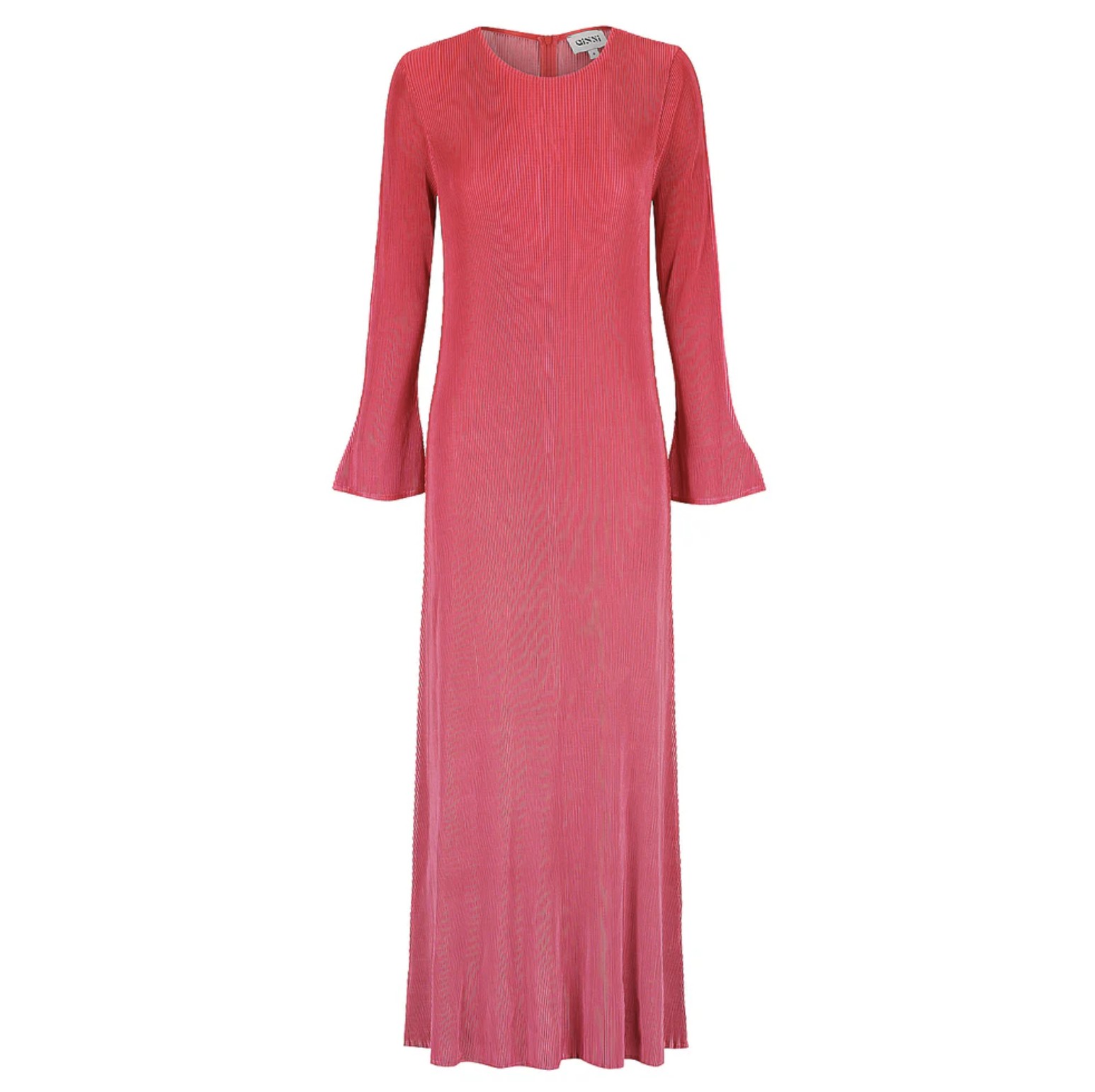 Our Heart Of Gold Maxi Dress is elegant and striking with its tight straight pleat, high neckline and flared cuffs and hem. A dress for every occasion.