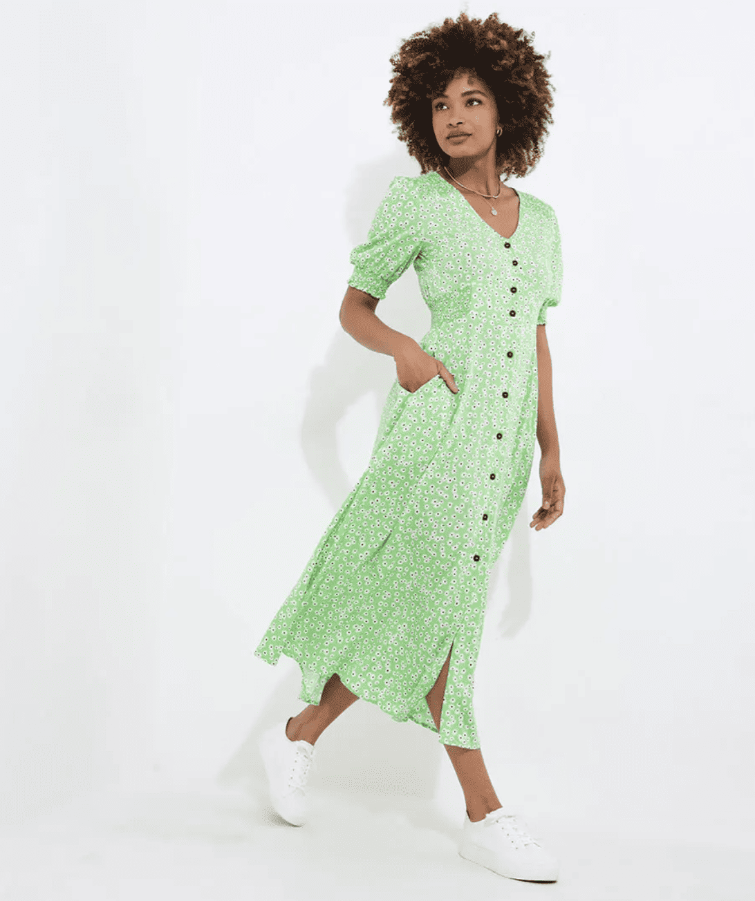 Try on this daisy-print maxi dress and discover your new favourite outfit. With a shirred waist and full hem to accentuate all the right curves, the buttons and puff sleeves only add to its feminine style. In a colour that’ll instantly freshen up your wardrobe, it’ll have you standing out for the right reasons.