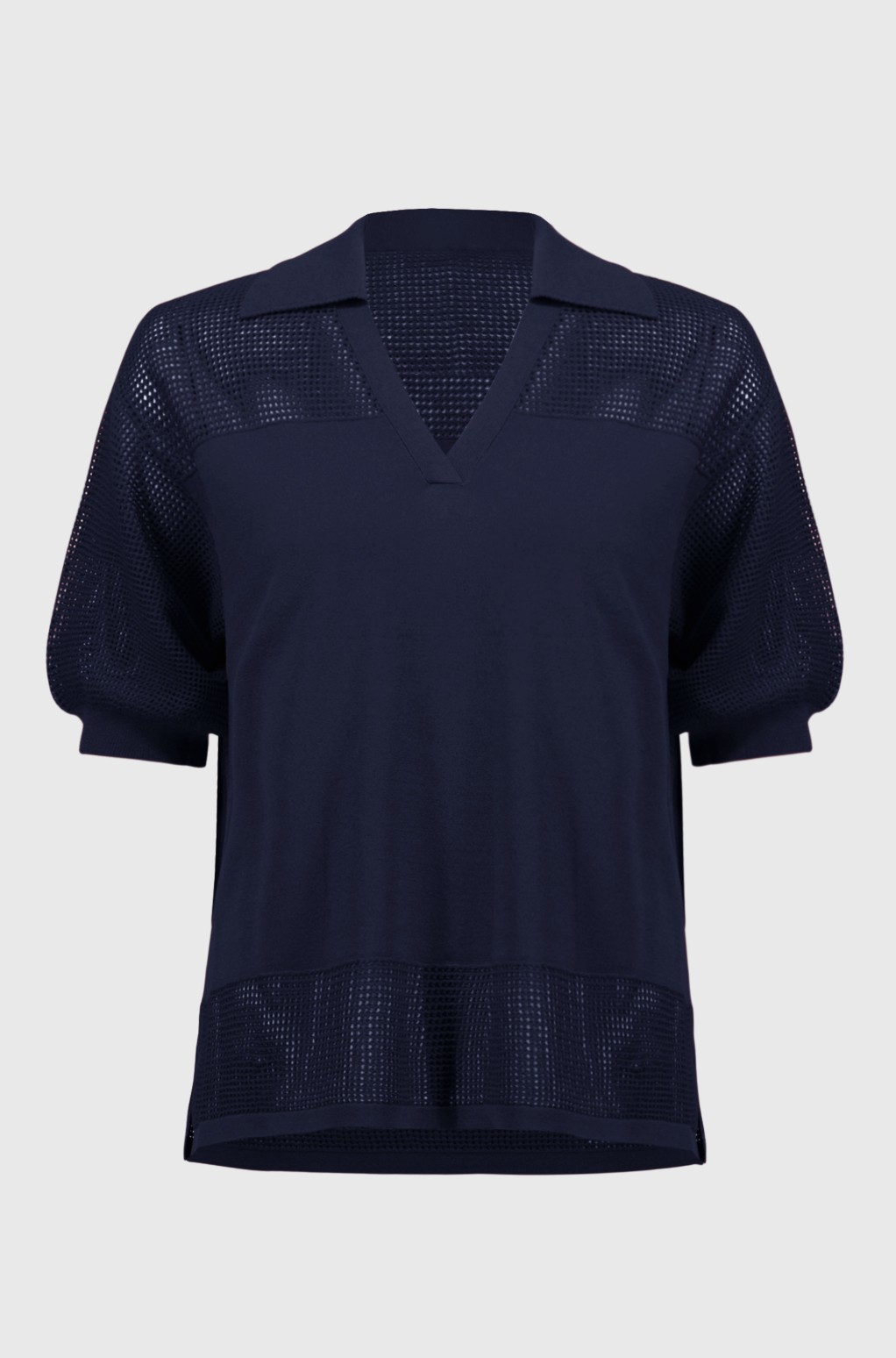 This sweater knit pullover, accented by feminine pointelle stitching and an open polo collar, is a standout piece to add to your wardrobe. Cut from a lightweight sweater knit that falls in a straight silhouette for a fit that’s not too tight or too loose.