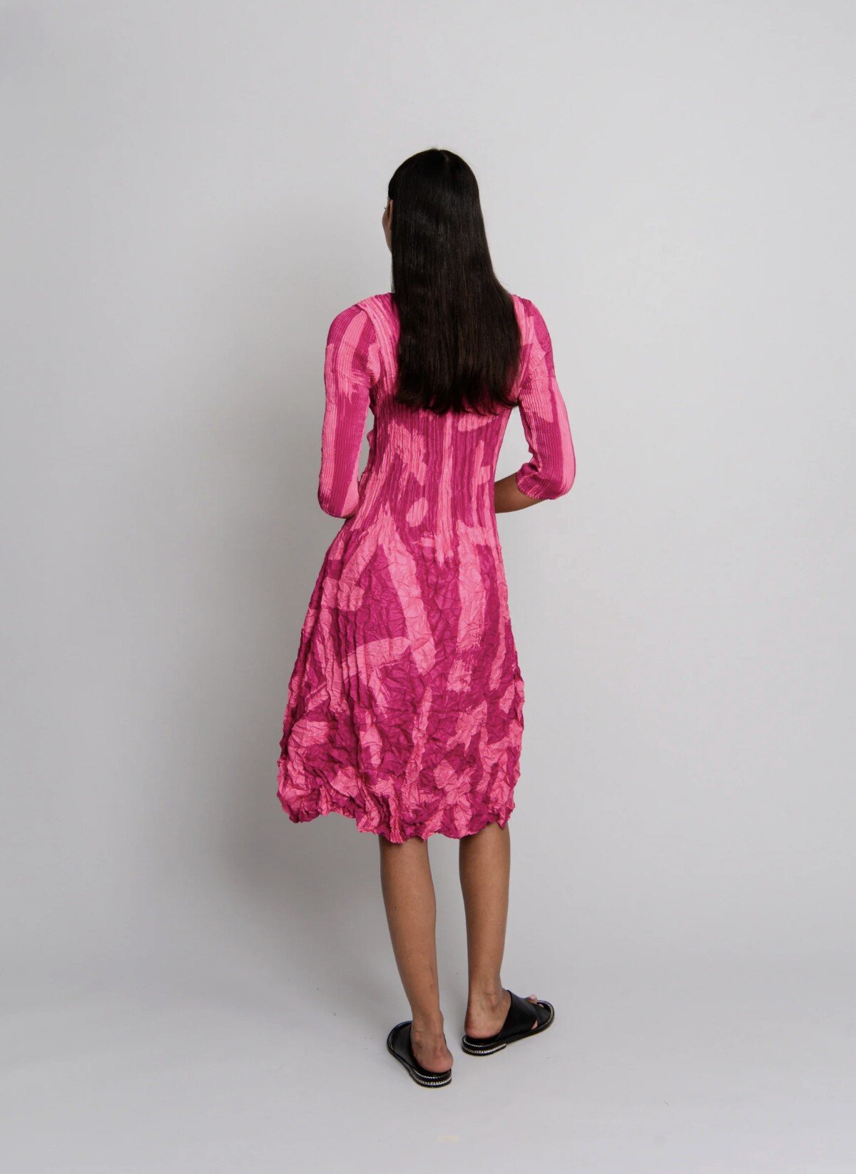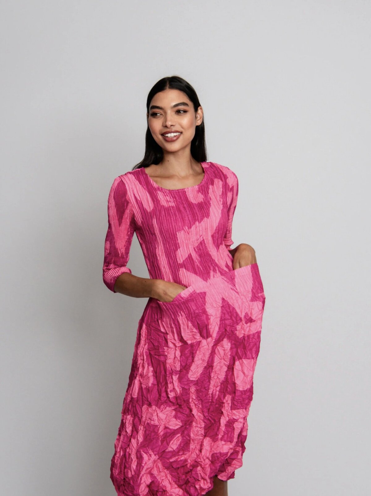 A celebration of colour and movement, the Smash 3/4 Sleeve Dress is a true statement piece. Crafted using Alquema’s signature crush pleat technique, the vibrant printed fabric sculpts the body without restriction and creates visual depth with every fold. Whether layered or worn alone, this printed dress is perfect for those who dress with confidence and creativity.
