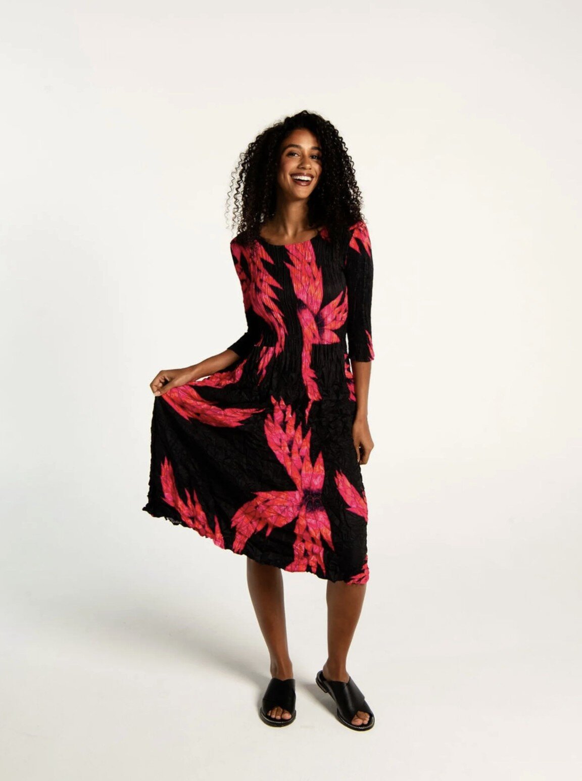 Crafted from lightweight reverse satin, the Smash Dress offers easy movement and all-day comfort. The sculpted pleats and V-neckline flatter the figure, while the cap sleeves and midi hemline make it a versatile wardrobe staple. This style is a bold take on effortless dressing, stylish enough for evening, breathable enough for day.