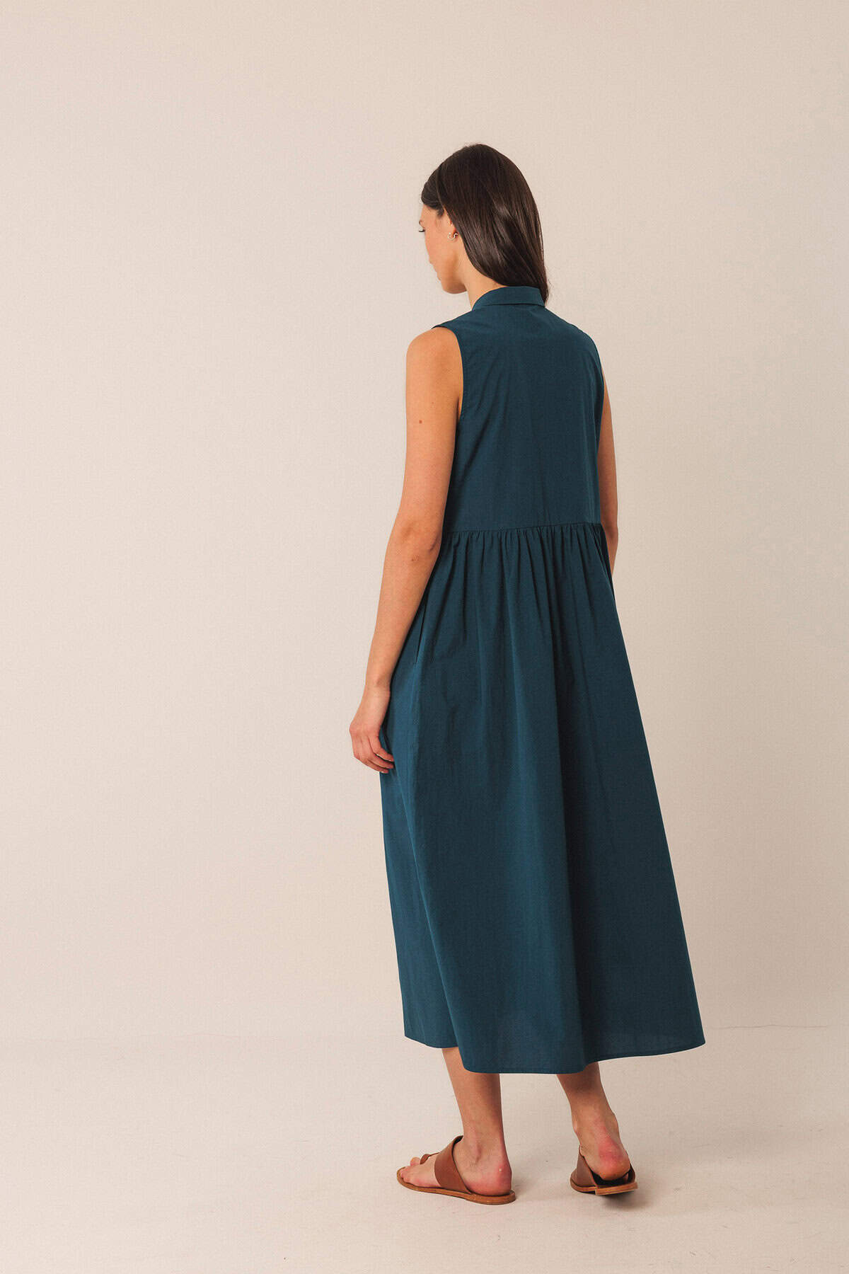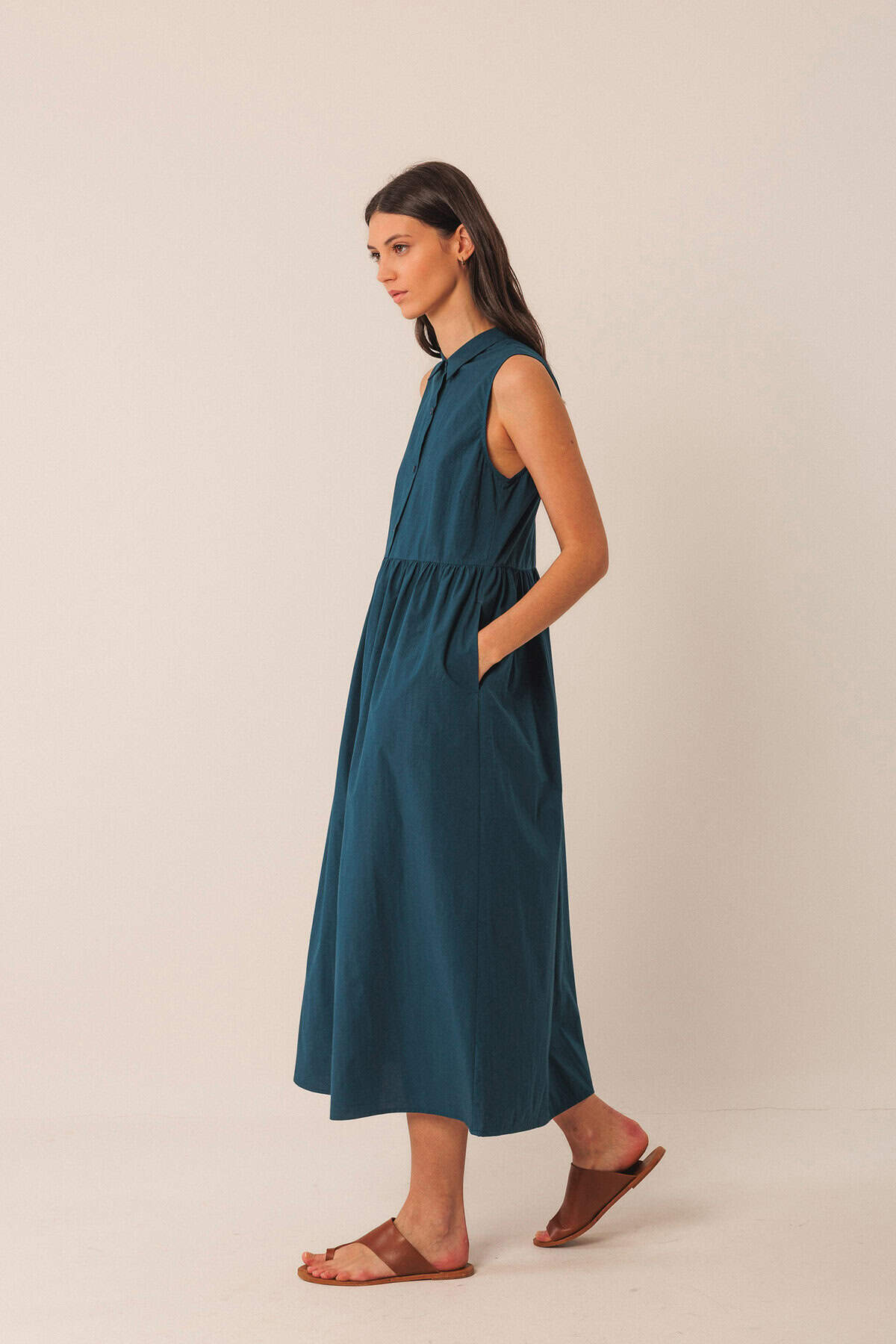 Light fabric drapes gently to maxi length, while button detailing and a classic shirt collar add refined charm. Feminine and graceful, it’s a dress that carries quiet confidence—perfect for leisurely brunches, breezy afternoons, or moments when you simply want to feel beautifully put together.