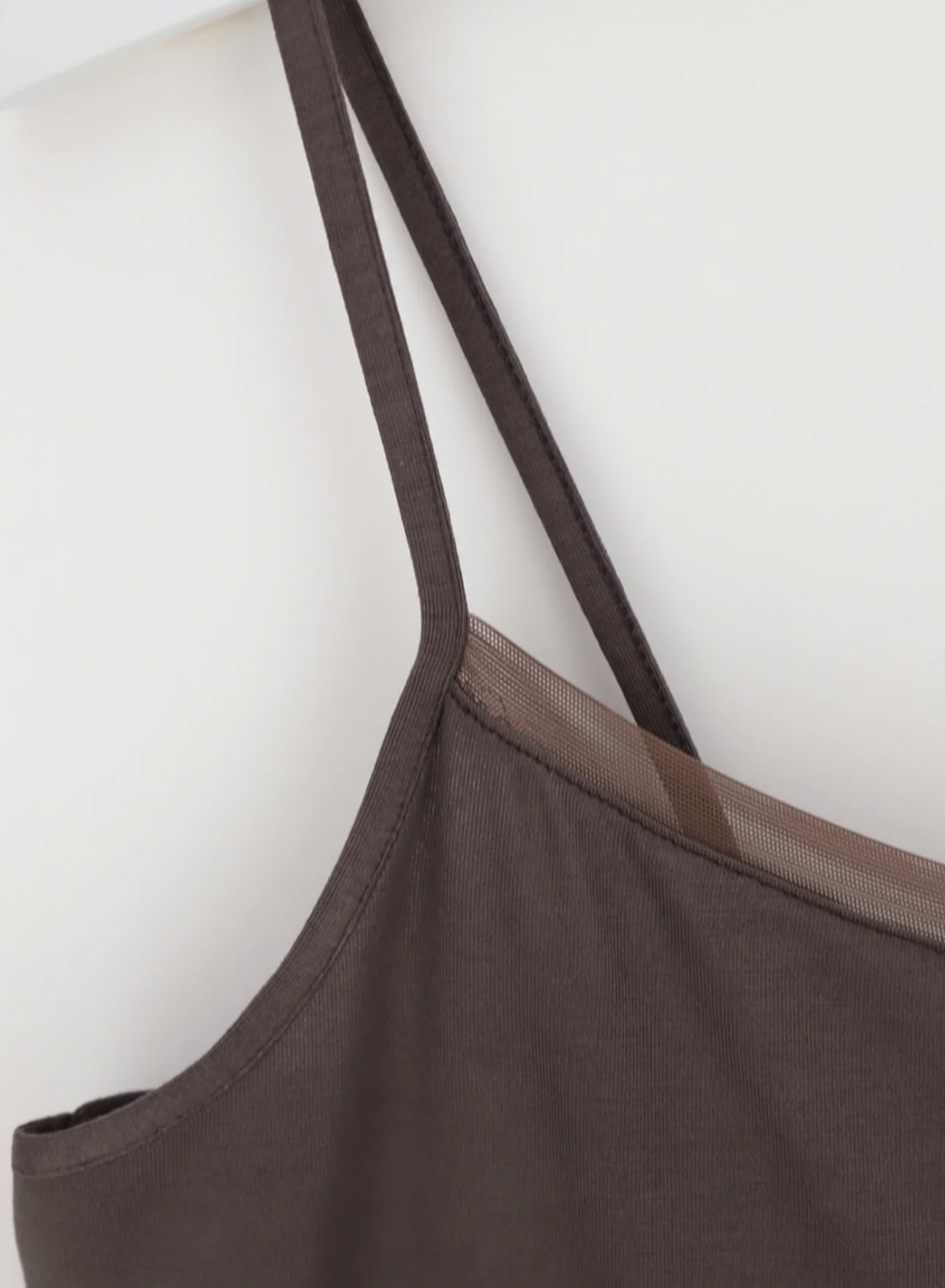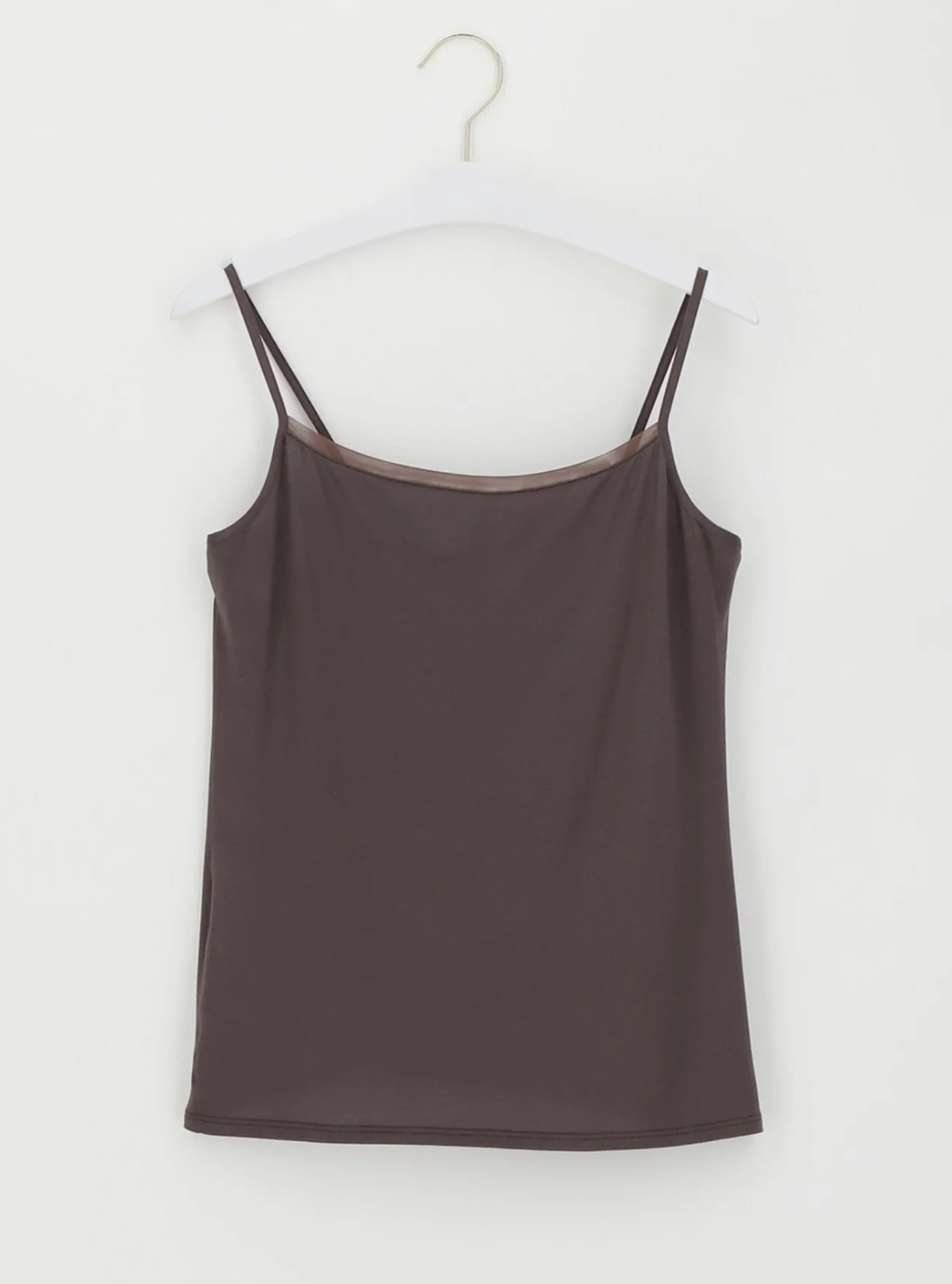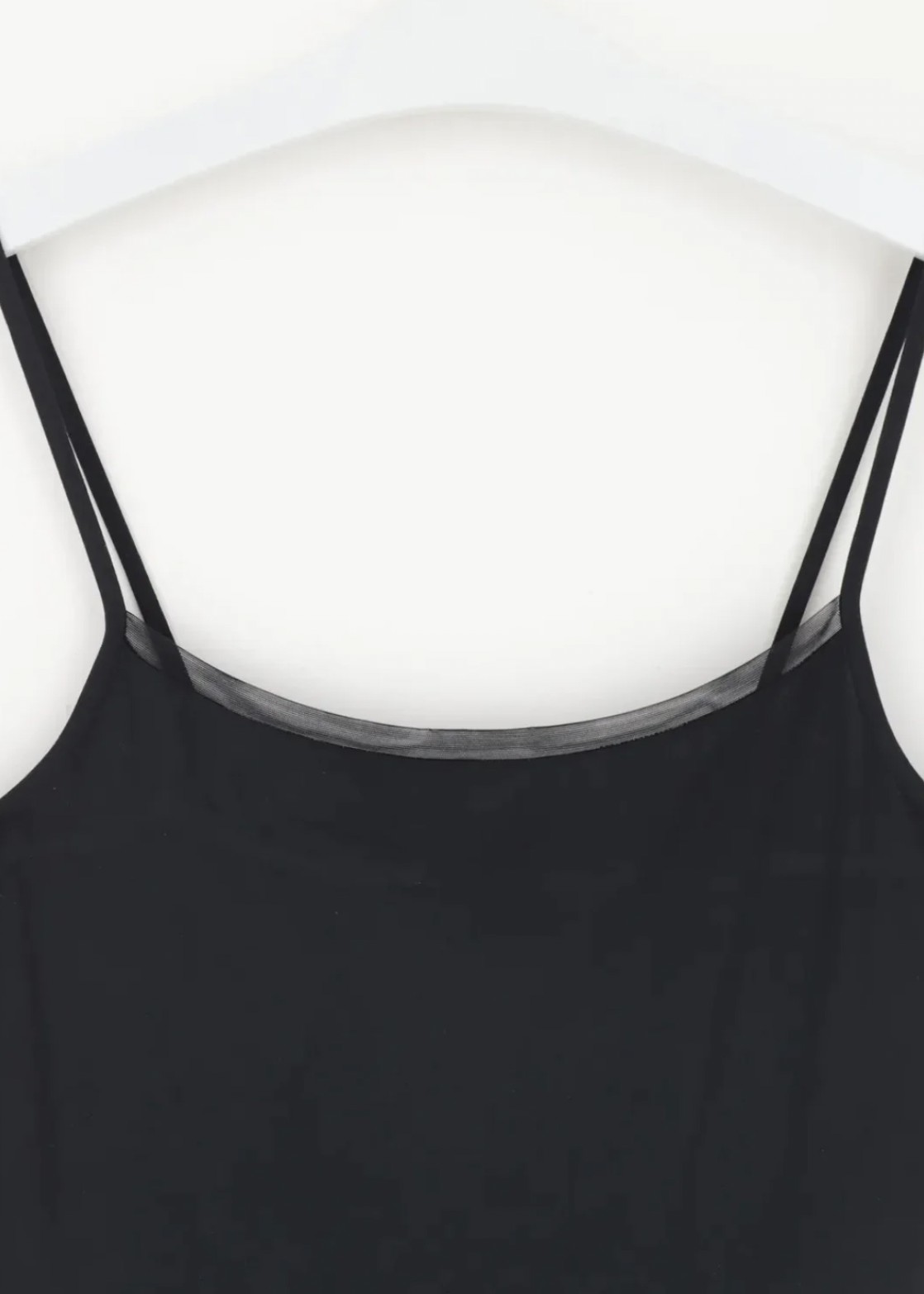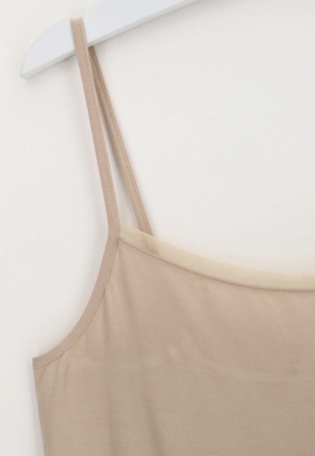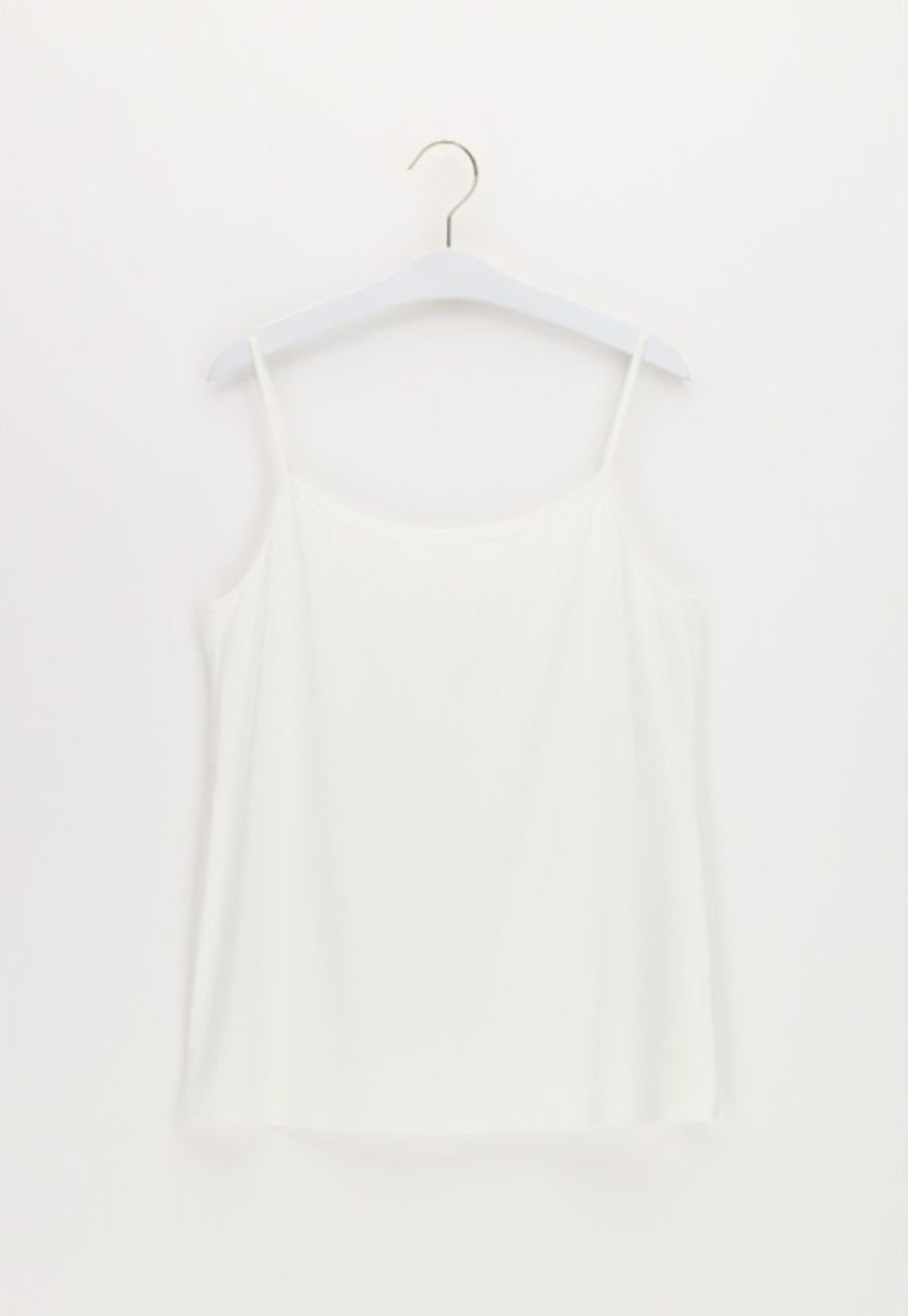 The Perfect Line Top from Oroblu in the colour Ivory. This camisole top with spaghetti straps is made of a light micromodal fabric for perfect wearability, very soft and supple, with the luxurious look of silk. At the neck are nice elastic tulle decorations. Connecting silhouette.