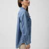 Denim shirt with tack button half placket, collar and front chest pockets. Curved hemline with wide hemband detail.