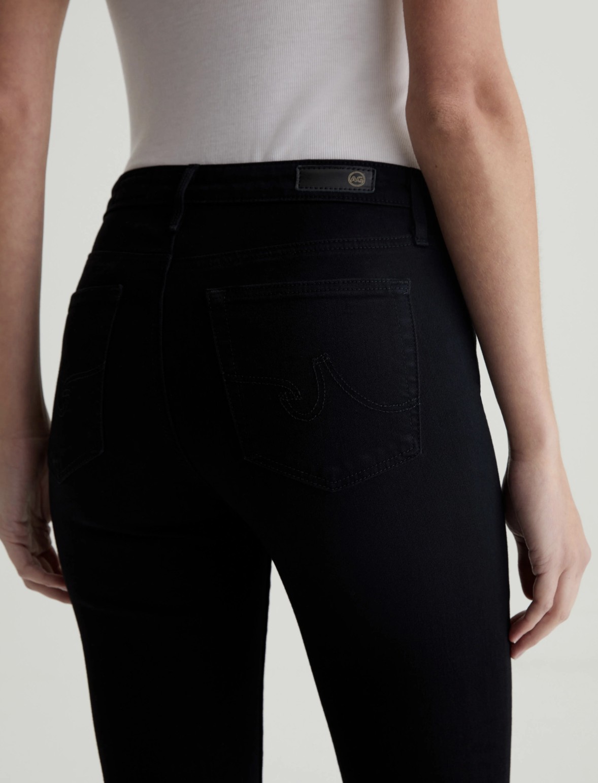 Prima is a mid-rise cigarette jean featuring a saturated black shade and tonal details. This jean has a fitted silhouette through the hips and slight tapering at the leg, designed in 10 oz. Superior Stretch Black Denim.