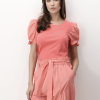 Cotton jersey T-shirt with puff sleeves in poplin with fine vertical stripes, a detail that will make you unique. Perfect with the trousers from the same range for a fashionable total look.