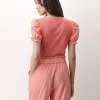 Cotton jersey T-shirt with puff sleeves in poplin with fine vertical stripes, a detail that will make you unique. Perfect with the trousers from the same range for a fashionable total look.