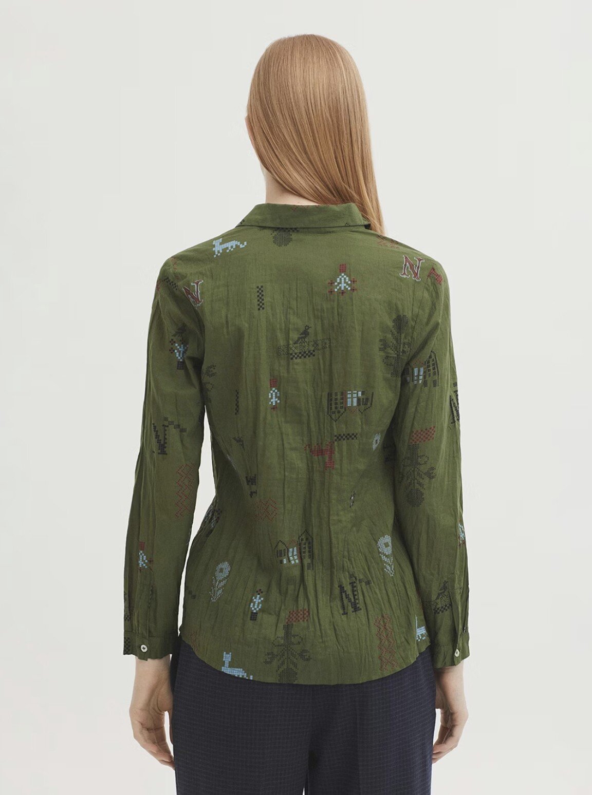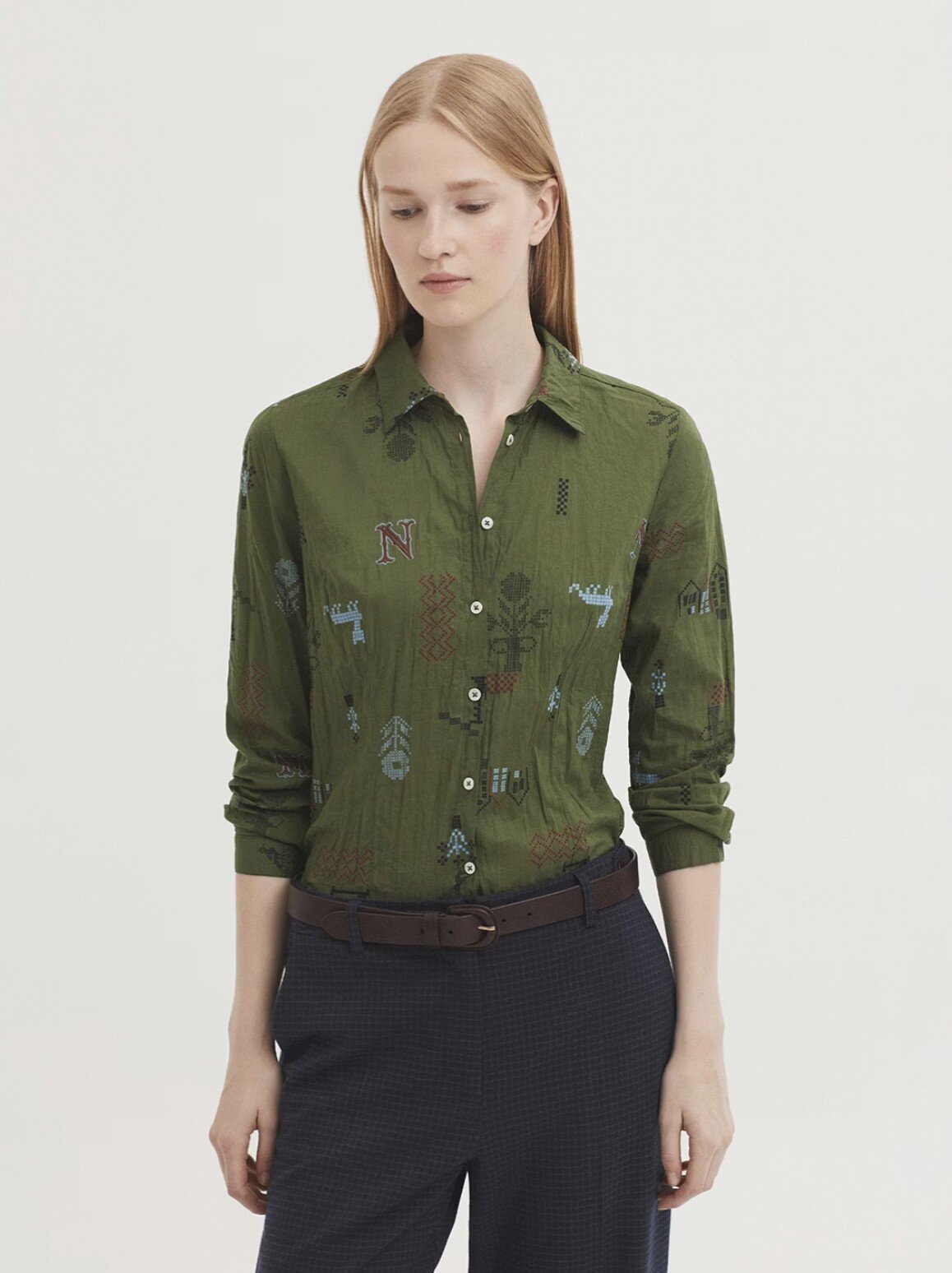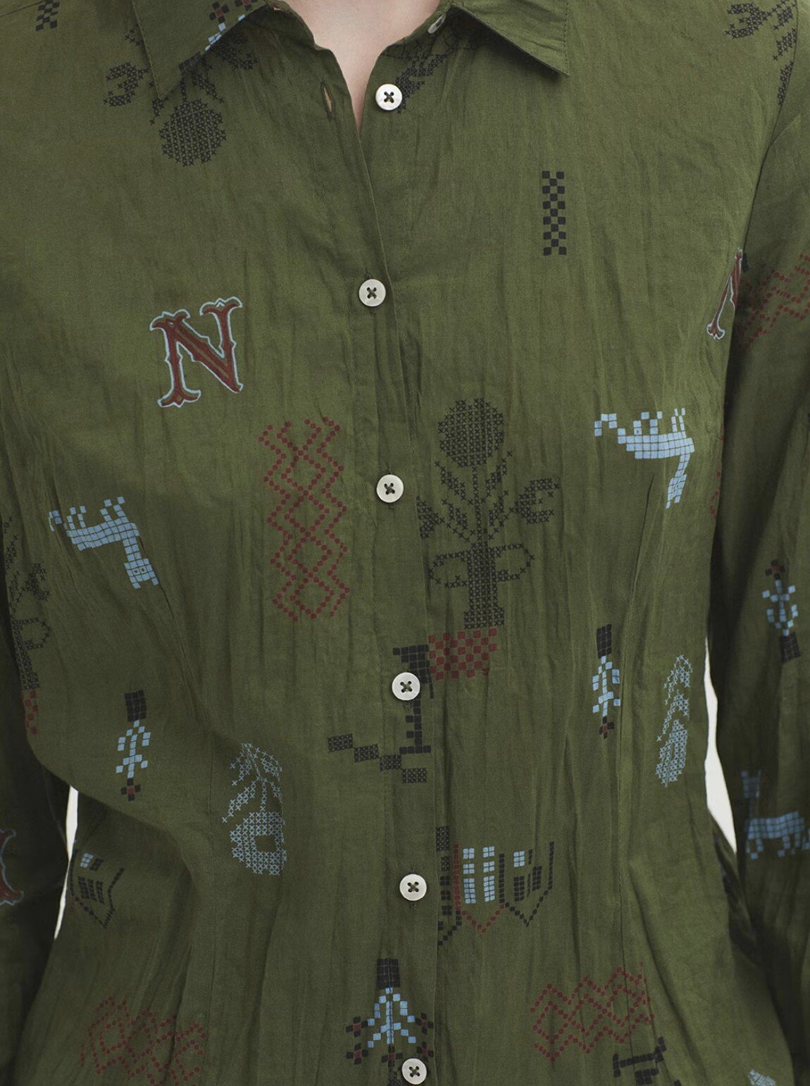 Made from sustainable crinkle cotton with a relaxed, lived-in feel. Finished with a classic shirt collar, luminous mother-of-pearl buttons, and long sleeves with a subtle vent and cuff.