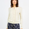 This fine cardigan has a beautiful knitted pattern along the center and is wonderfully airy. Made of cotton and linen, it is a perfect cover-up in the summer and the perfect laying piece in the winter!