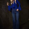 Crafted from ultra-soft Featherweave denim, these classic wide leg jeans offer a perfect blend of comfort and a flattering fit. Subtle all-over rhinestones add a touch of sparkle, making them an easy yes for fashion lovers.