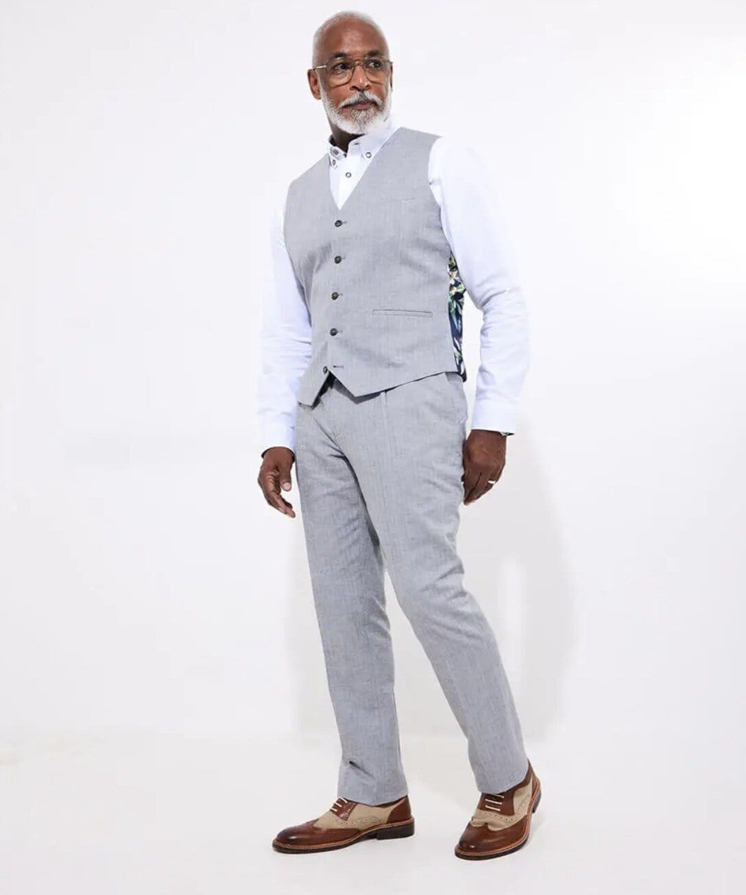 This silver herringbone waistcoat will make the most dapper addition to your wardrobe. Full of high-quality details from the inside out, we added a standout floral lining to the waistcoat that you simply can’t ignore. Suit up with grey trousers and blazer, or keep it more casual with black jeans and boots.