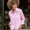 Meet the pink stripe shirt that’ll make a statement in any outfit. Balancing the unique graffiti prints with a button through design and tab to adjust the sleeves, you can easily wear it your way, stand out with heels and dressy trousers, or keep it casual with cargos and pumps.