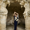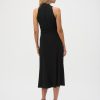 Capture the spotlight in this silky knit dress. The faux halter neckline exudes undeniable charm and complements the garment’s chic fit and flare silhouette. The waistline is beautifully accented with shirred sides and a gleaming gold triangle ornament, adding a touch of luxe to your look. A daring front slit completes the design, making this piece a stunning choice for any occasion.