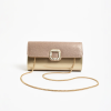 Description: The Dolores Diamante Clasp Fold Over Clutch in Gold features a fold-over top with a diamante clasp, magnetic closure, and optional chain strap. Crafted from vegan leather, fabric, and diamante.