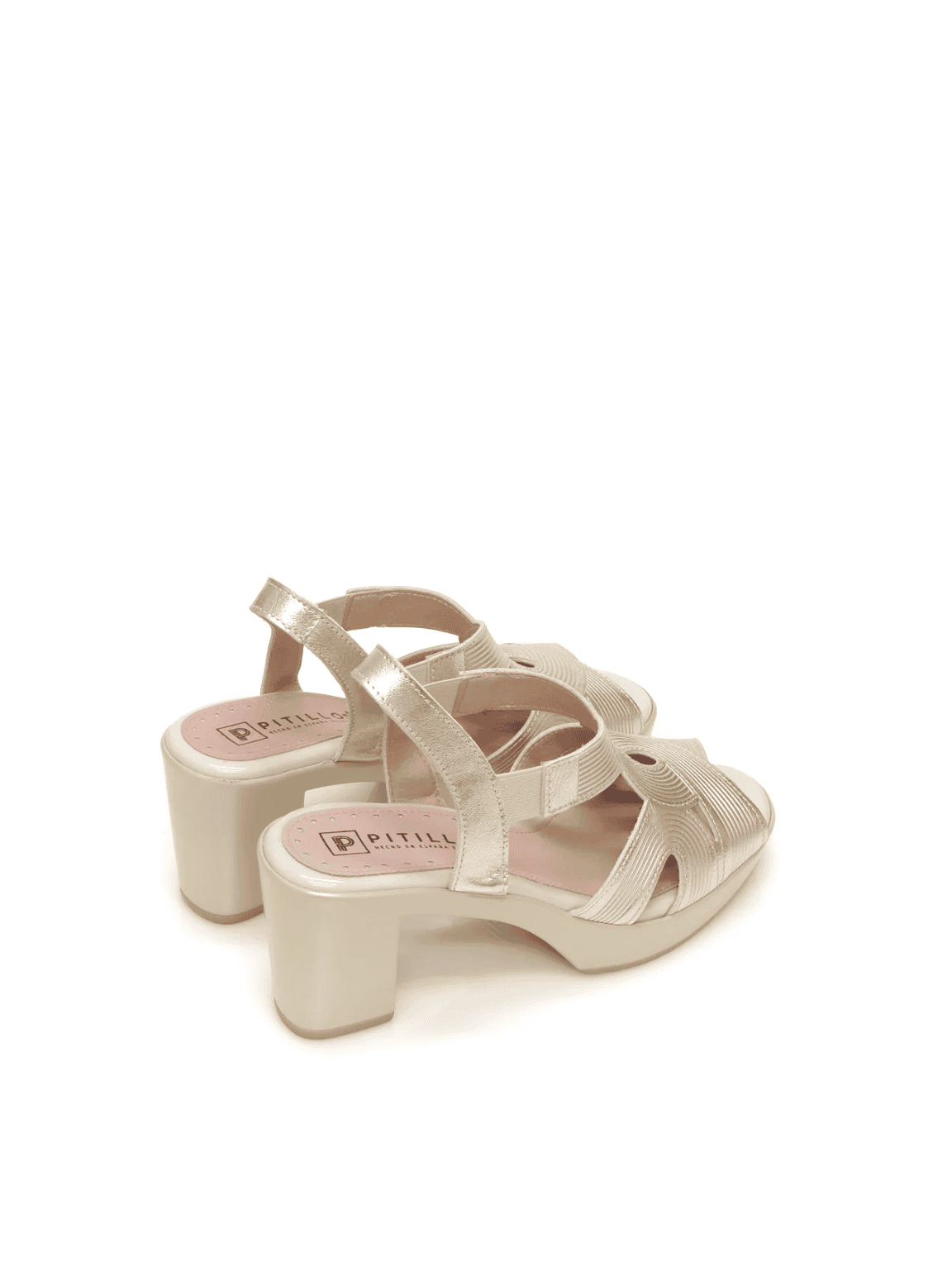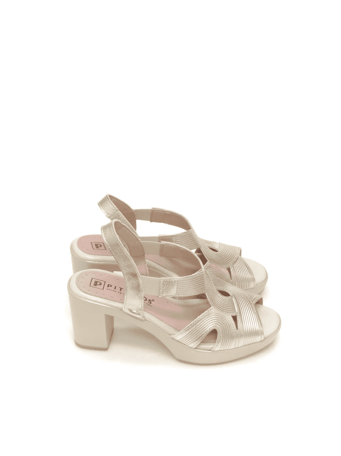 Shine this season in our neutral/gold leather sandal. With a 7cm heel and platform design, it gives you elegant height without compromising comfort. The elastic side detail ensures an easy, secure fit, while the breathable insole keeps you cool all day.