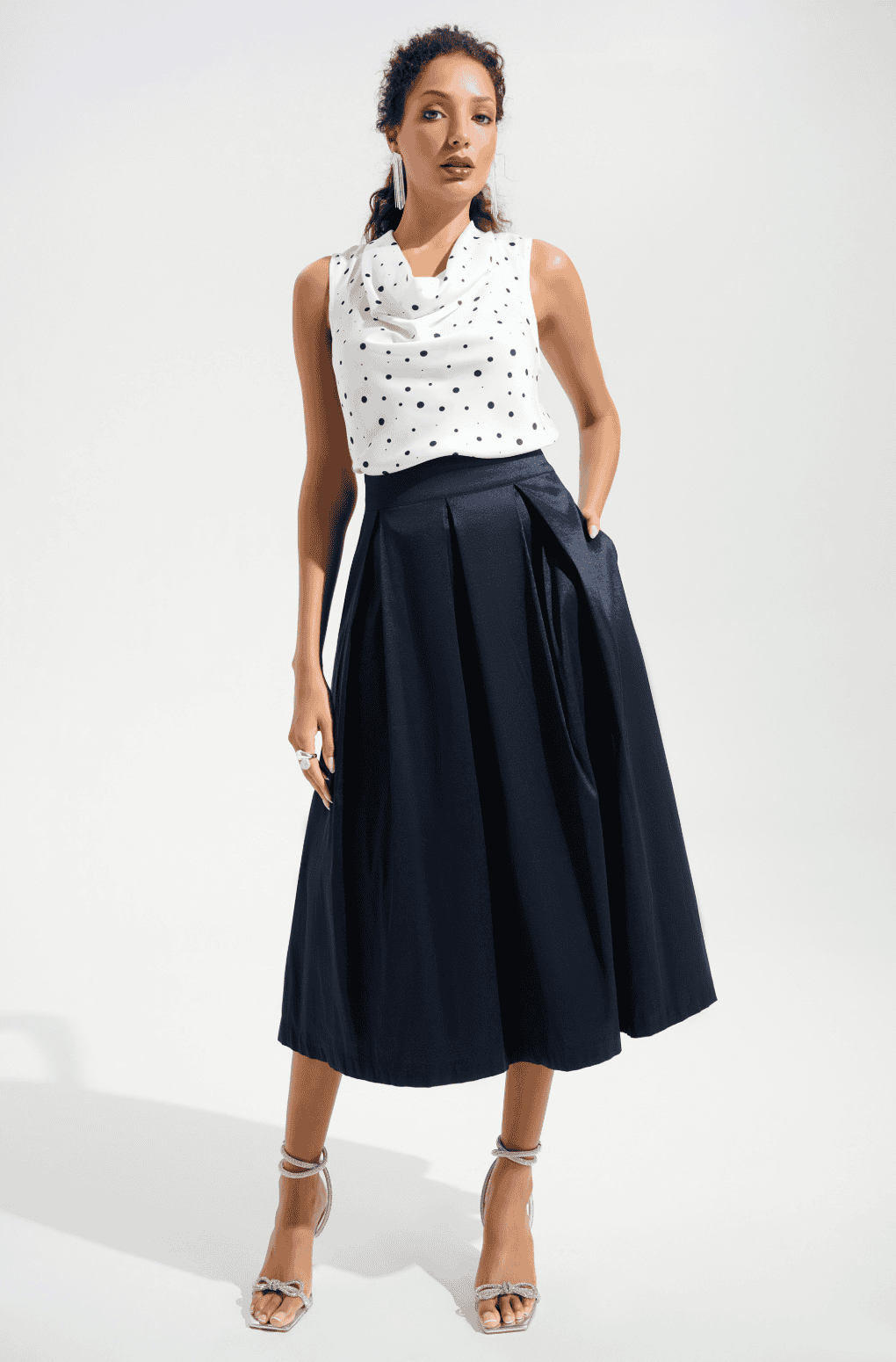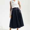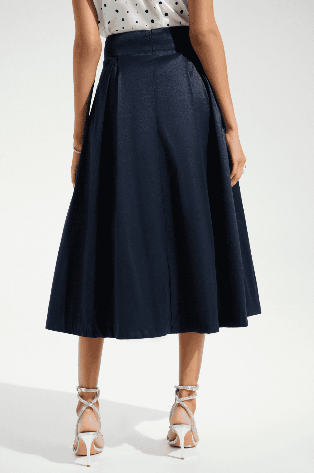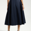 Structured yet fluid, this stretch taffeta flared skirt combines a crisp silhouette with soft box pleats and a wide defined waistband. Finished with side pockets and a hidden side zipper for a seamless look. Part of the Signature collection.