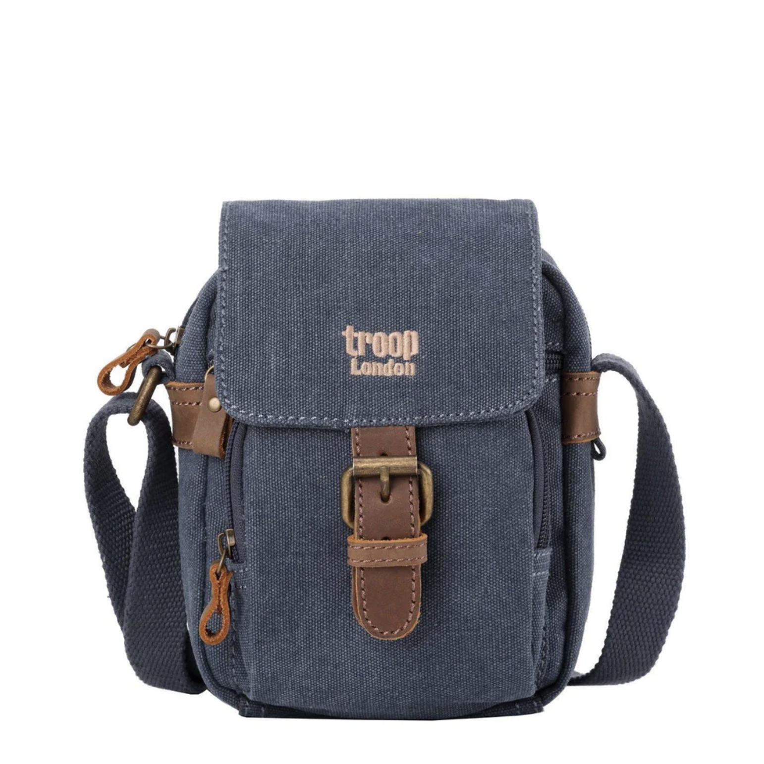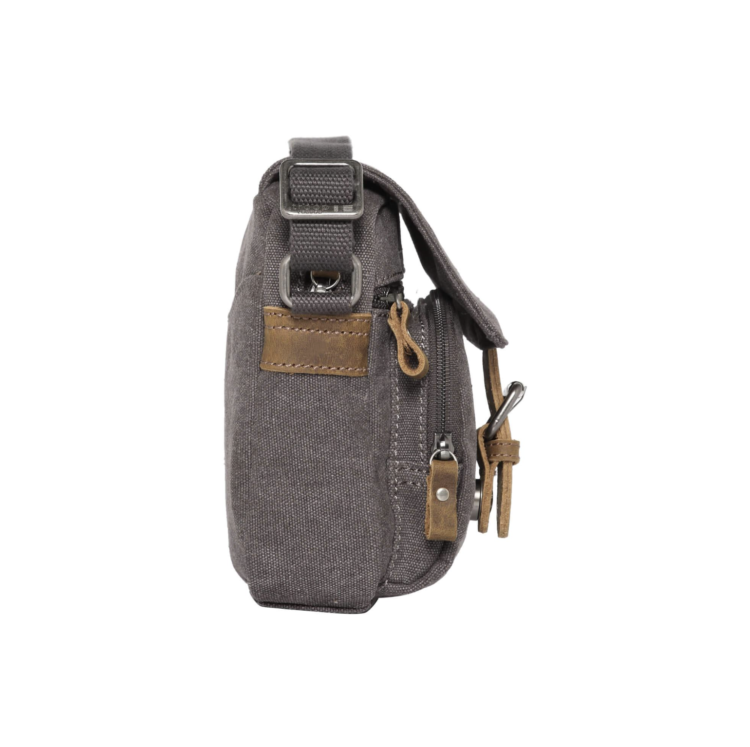 Adjustable canvas shoulder strap with stylish and functional, brass-plated buckles