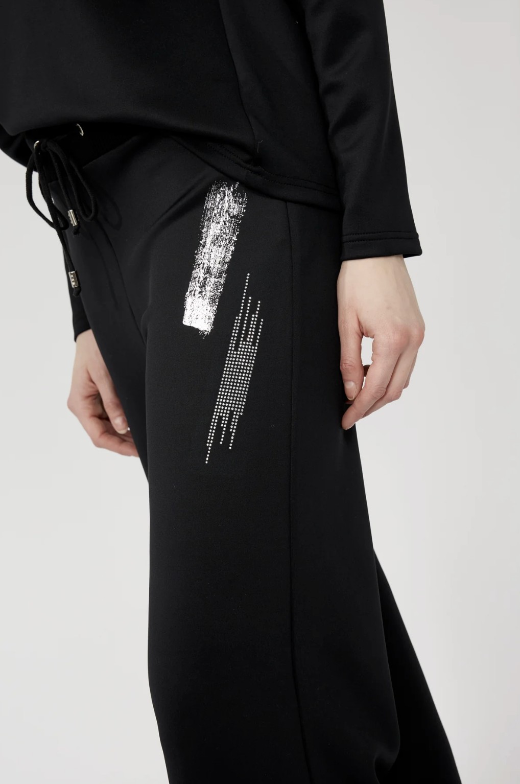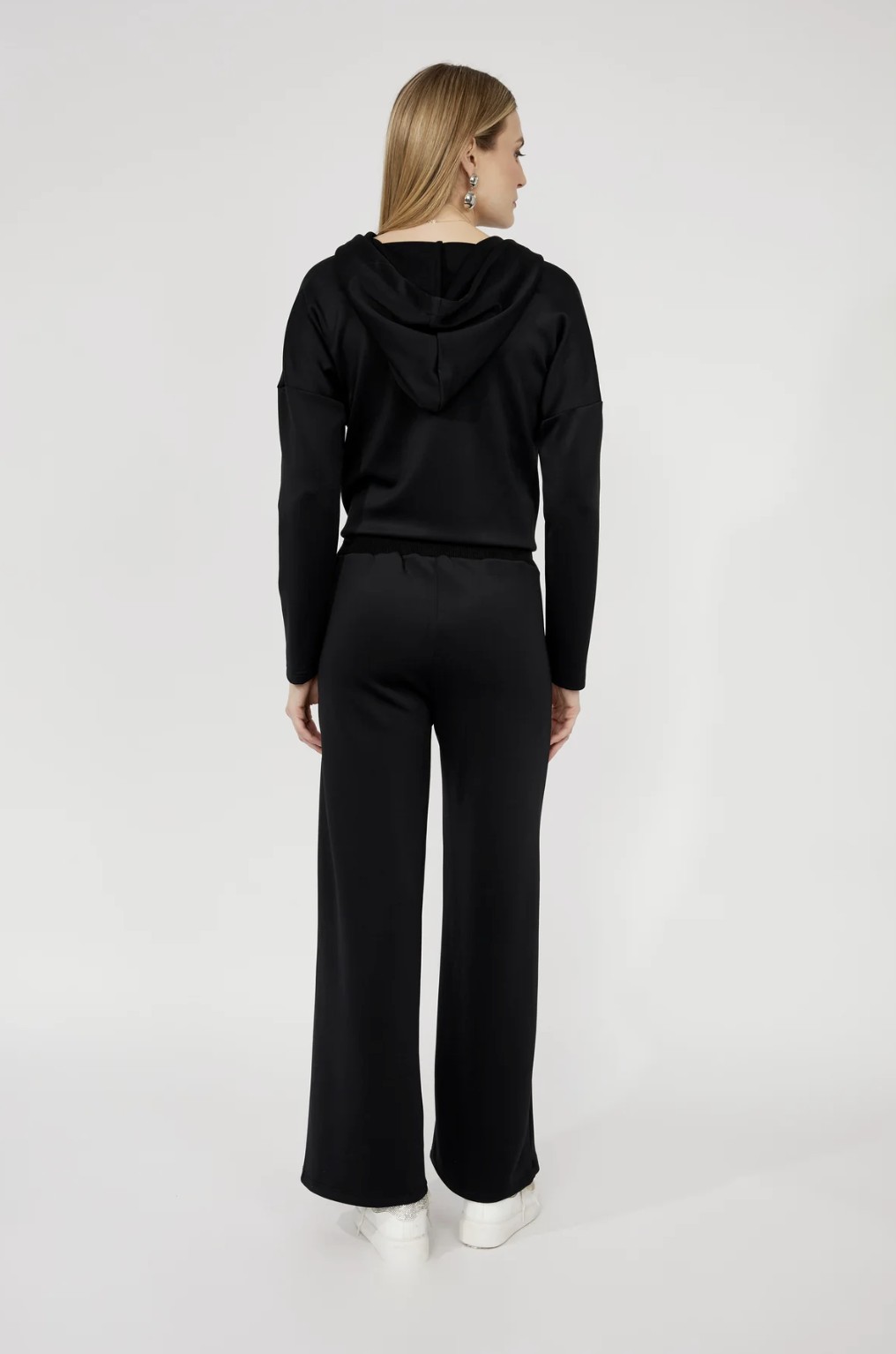 Introducing the ultimate blend of comfort and style. These relaxed-fit, full-length trousers are perfect for both casual and office settings. Featuring an elastic waistband, drawstring, and zipper for a secure fit, they offer unmatched convenience. The minimalistic, plain design with jewel accents adds a touch of elegance. Ideal for those who appreciate simplicity and functionality.