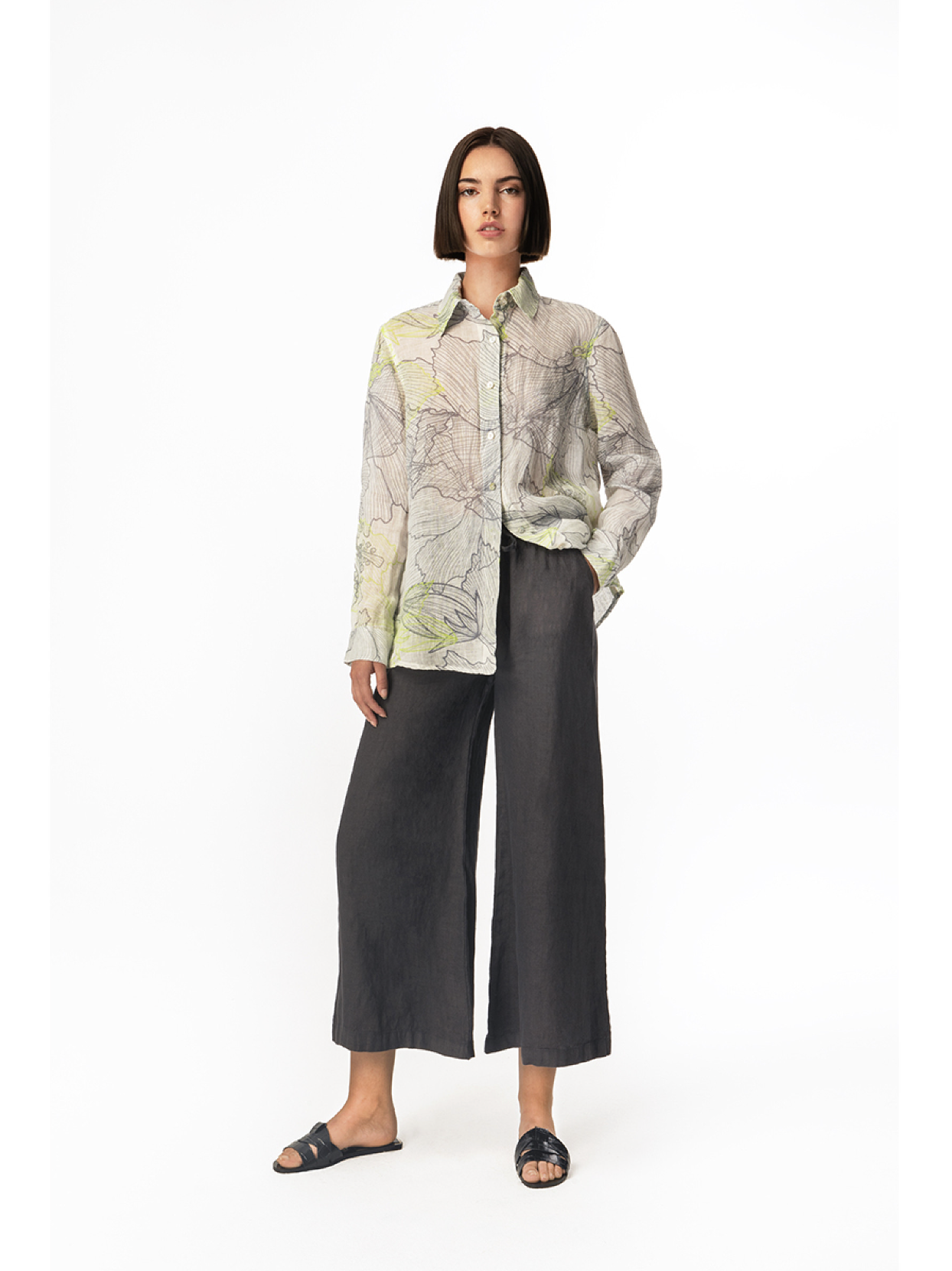 Description: The printed button-up linen gauze shirt is a stylish and laid-back choice. Featuring a fashionable print, this shirt adds a playful and contemporary element to the classic button-up design. Crafted from breathable linen gauze fabric, it offers both comfort and a trendy edge, making it a versatile option for various occasions where you want to showcase relaxed style with a touch of flair.